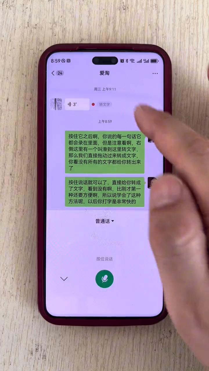 以后给别人发消息不要再打字或者手写了。 以后再给别人发微信消息的时候不要拼音打字或者手写了,这种方式已经过时了,不仅仅是打字慢,而且容易出现错别字。现在有一小部分人开始用全新的方式在跟别人交流了,特别适合那些打字慢,经常容易出现错别字的朋友们,方法超级实用,一定要学会。不夸张的说,学会了这个方法一分钟打出两三百字都是非常简单的,而且不用下载软件,这个就是手机自带的功能。 接下来把这个方法分享给大家,视频内容都是干货,建议大家点赞收藏好,别手一滑找不到了,朋友们跟着我一起学。 ·首先打开手机上的微信,然后随便找一个跟朋友的聊天框就可以了。今天教三种快速打字聊天的方法。 →第一种,看到平常发语音消息的按钮了吗?点开它之后,这里有一个按住说话对不对?当按住它之后,你说的每一句话都会录在里面。但是注意看,右侧这里有一个叫滑到这里转文字,直接拖动过来转成文字,所有的文字都转出来了,松开手之后文字就保留在这。 如果这里有什么标点需要加的,其实不用加,都已经给打好了,没有什么东西了,没有什么问题了,点击发送,你说的每一句话都变成了文字,直接发送给对方,是不是非常方便? →第二种,点开这个小加号,这里有一个语音输入,同样的,这里还可以调整普通话、粤语和英语,自己选,选好之后按住说话就可以了,直接转成了文字,看到没有?比刚才第一种还要方便。所以学会了这种方法以后打字是非常快的,松开手之后自动的标注好标点符号,点击发送就行了。 →第三种,在输入框这里,看到下方键盘这里小话筒了吗?按住它之后就可以直接说话,直接转换成文字都不用改的。松开手之后直接打好标点符号,点击发送。 以上这三种学会了一种,以后在打字速度上可以提升好几倍的效率。试一下。 以上的方法大家学会了吗?跟着视频操作一下,有什么不懂的评论区留言。关注我,北斗知识干货都很硬核。