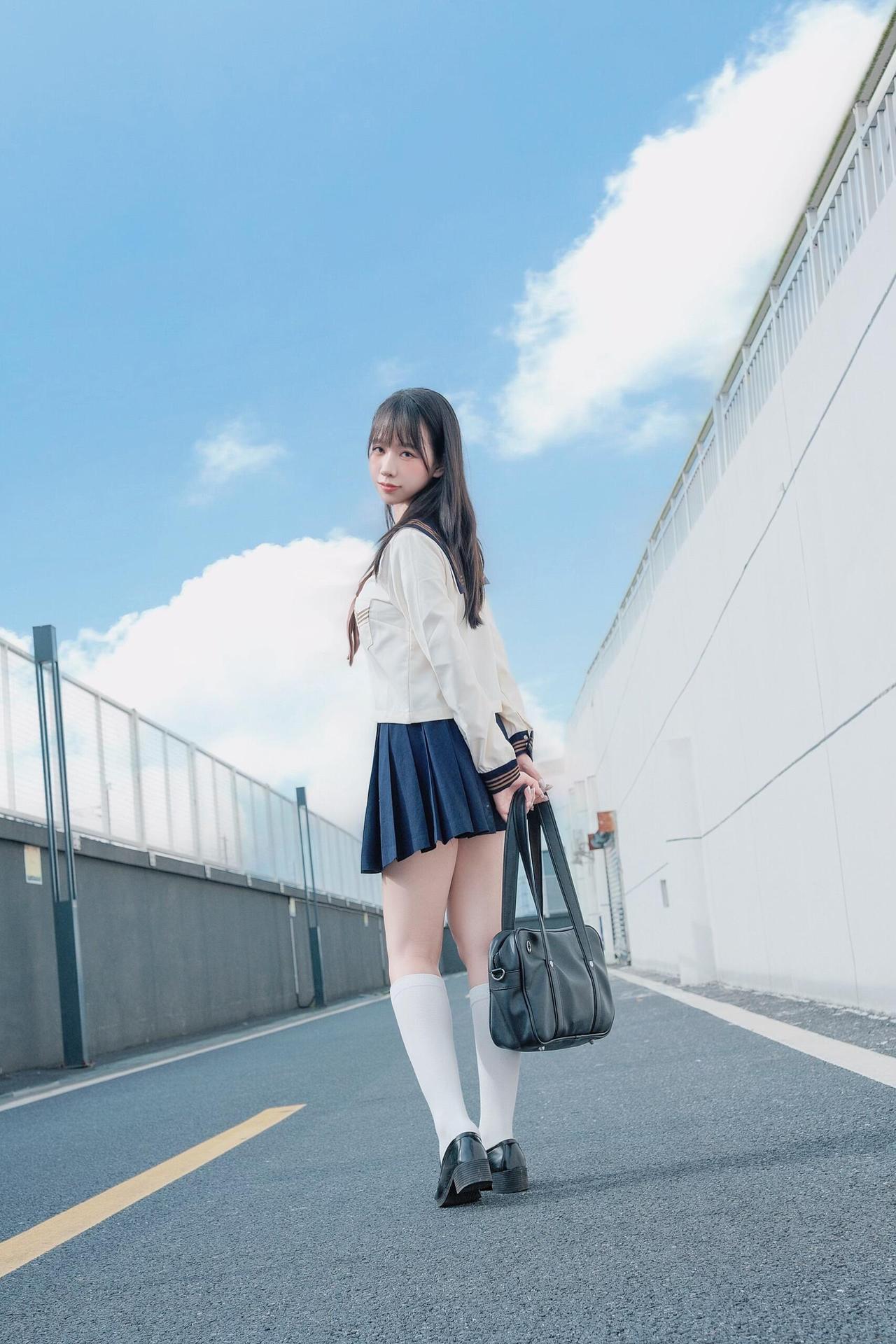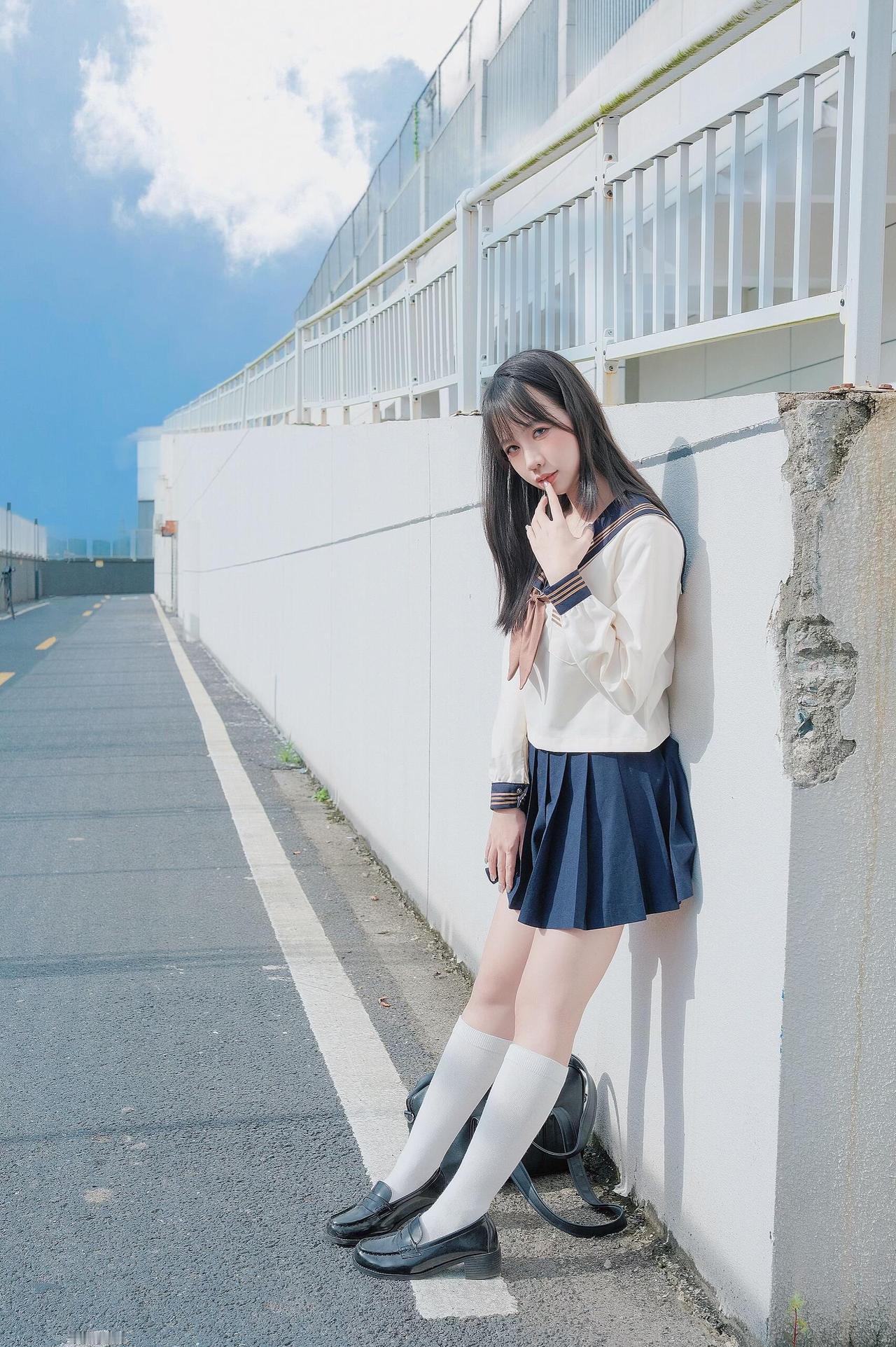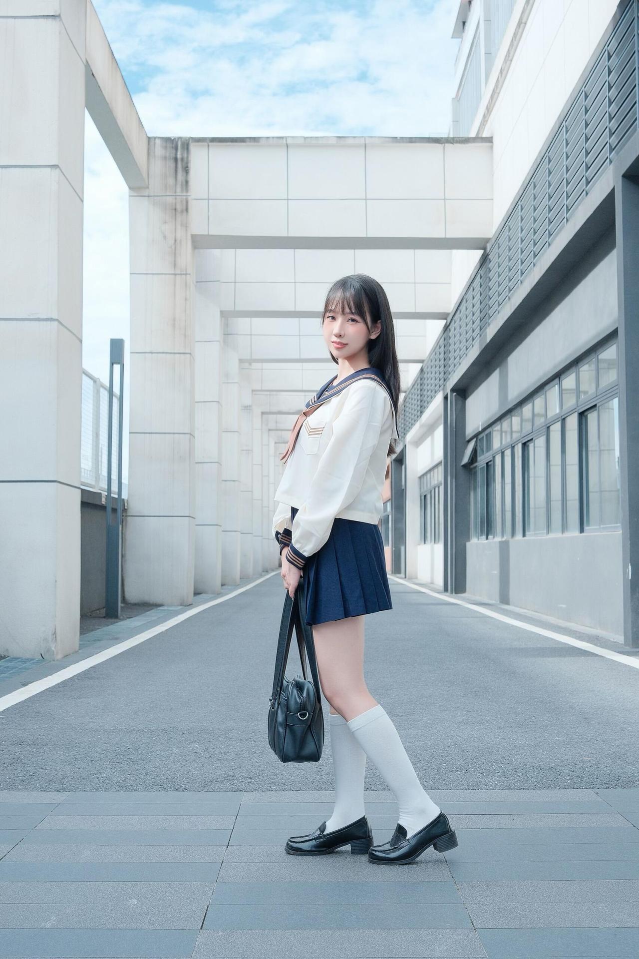 校园少女风,背着书包,手捧书本,元气满满的一天!