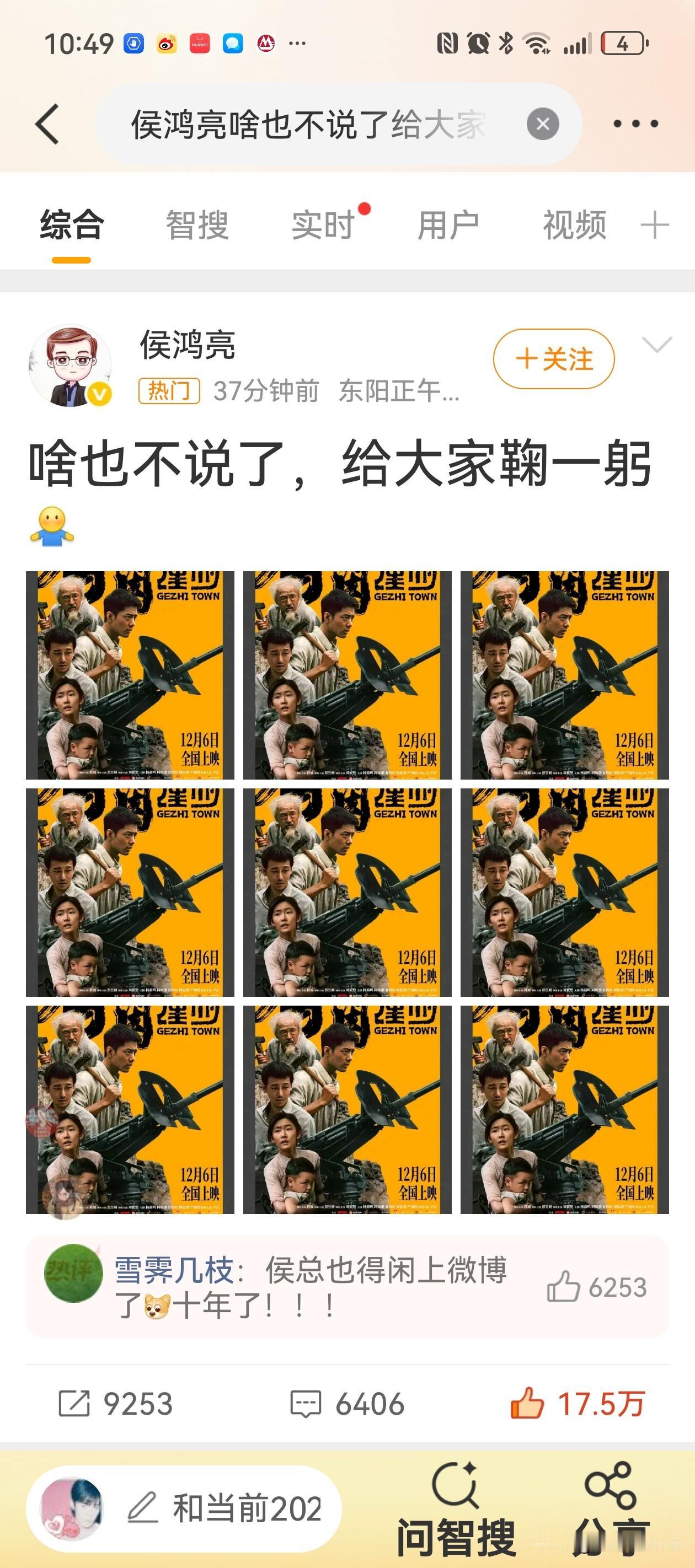 预售有多重要,连制片人侯鸿亮这种业内大佬都盯着预售票房呢,一破亿立刻发了微博感谢🙏。这些实绩就是肖战的底盘和号召力。加油💪我再买5张7号的,为莫得闲添砖加瓦每个人都很重要[比心]