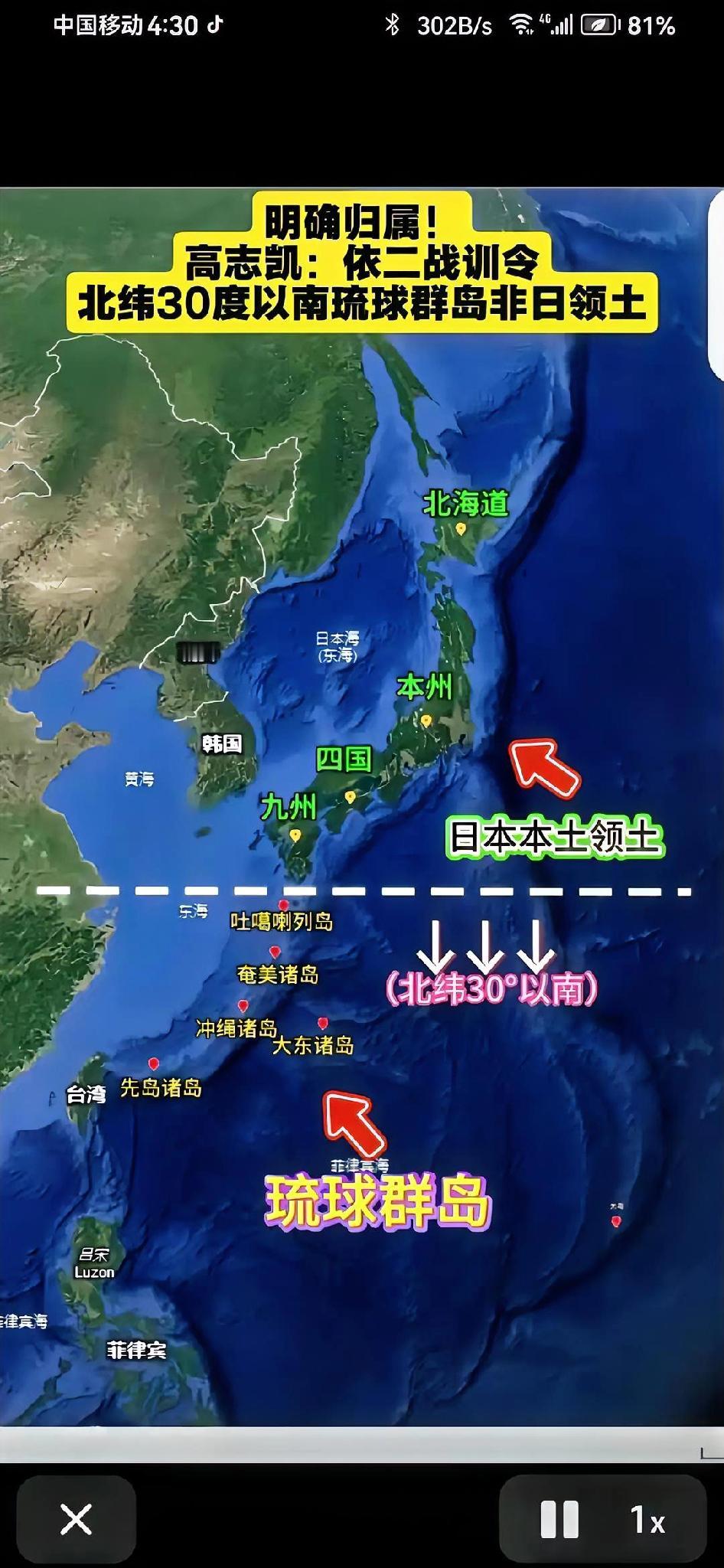 高志凯最近有个重要观点:二战时期的地图可真是铁证如山!北纬30度以南的区域,地图上明明白白标着“琉球领土”四个大字,日本当时的边界线,在图上规划得清清楚楚!这份1945年的训令文件,简直就是在打某些人的脸! 当年反法西斯阵营拿命换来的胜利果实,怎么能让后来的人随便改呢?琉球群岛的主权到底归谁,早就有明确的说法了,那些想趁机搅局的势力,还是别白费力气了。有网友翻出老地图开玩笑说:“这红线画得比我小学写作业时的线条还规整,某些人故意装看不见,这可就不太合适了啊?” 更有意思的是,文件里连经纬度都标得特别清楚,简直就像怕某些人不承认,恨不得亲自按着他们的手签字确认似的。历史可不是橡皮泥,想捏成啥样就捏成啥样的。现在啊,就算是中学生都清楚,北纬30度就是一条不能越过的“楚河汉界”。 专家也说了,坚持二战时期的定论,不光是尊重历史,更是维护地区和平的根本。那些总想着耍小聪明的人,还是早点醒醒吧,毕竟全世界的目光可都在这儿看着呢!你觉得这份老地图,是不是把某些人的心思都戳穿了?