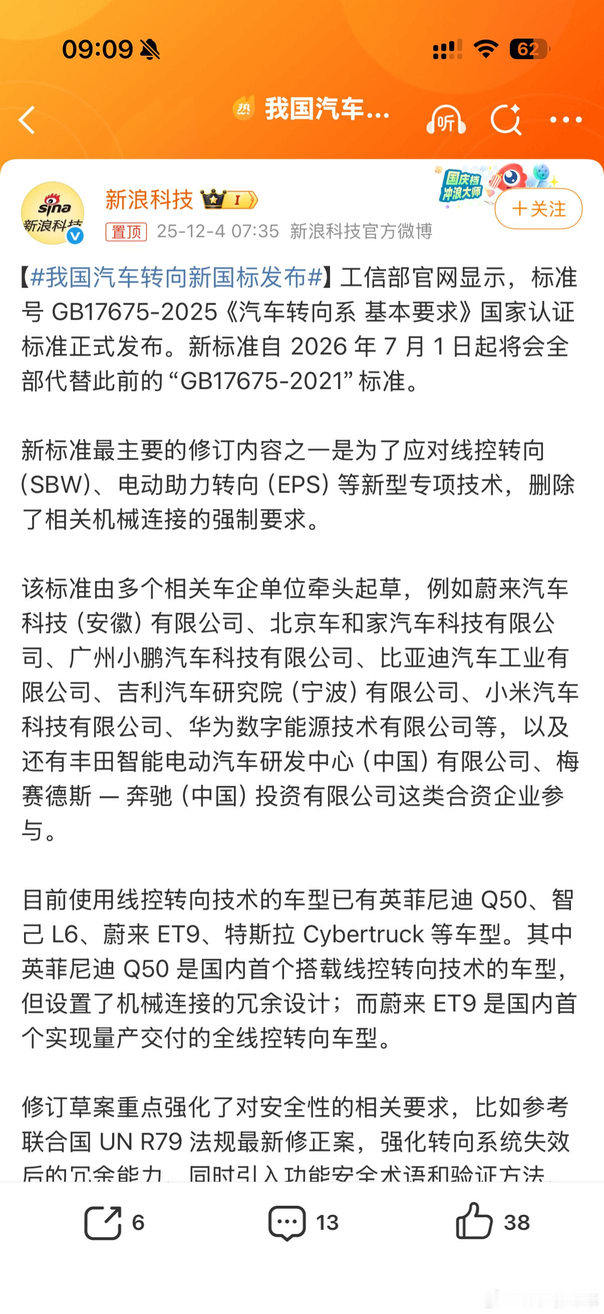 我国汽车转向新国标发布线控技术蔚来ET9是先行者,不过很多报道中都把第一个起草单位,上汽给忽略,这是为什么?当然我们也没看到上汽自己有发宣发内容这就像是“起个大早赶个晚集”,刚好刻意回避