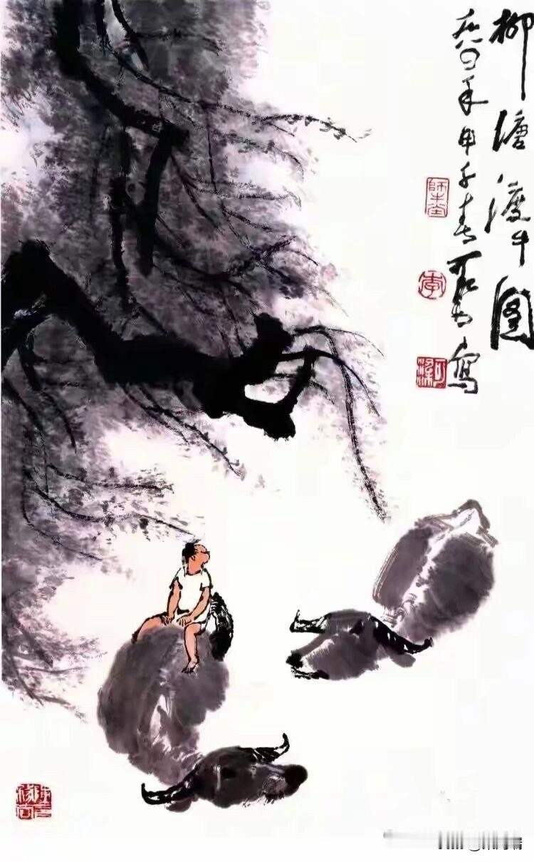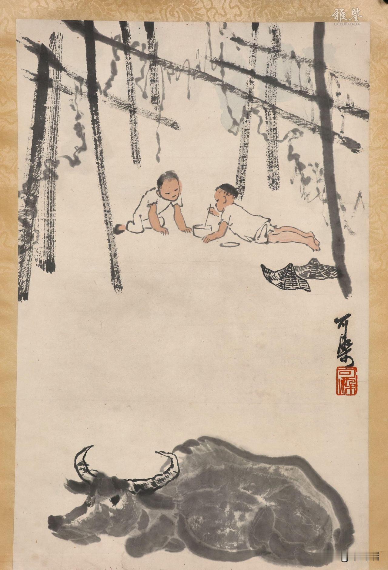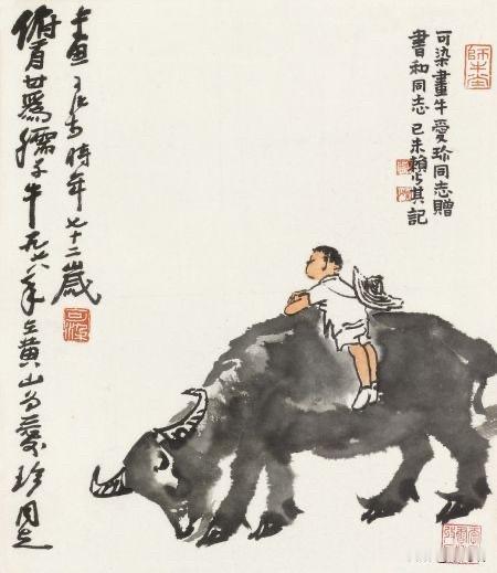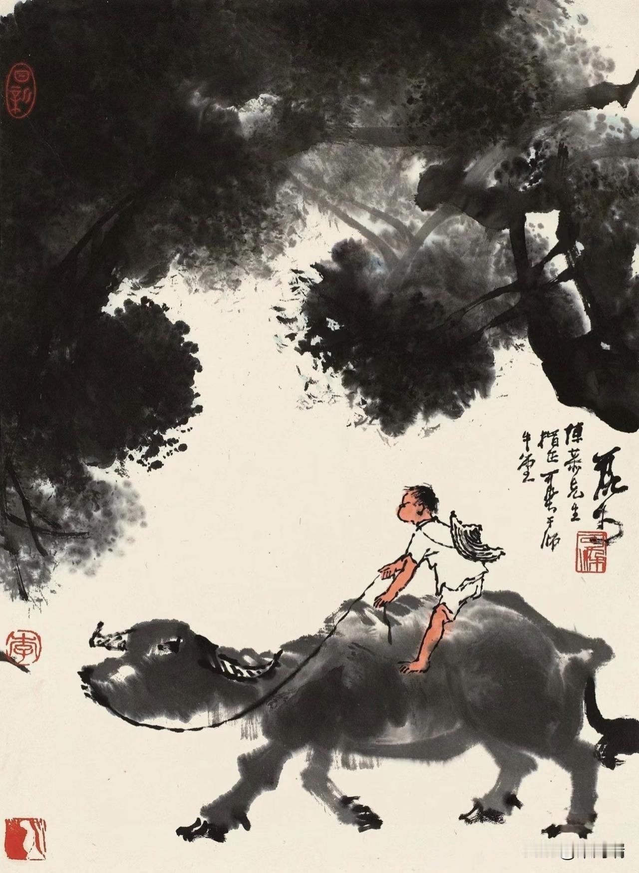 李可染(1907—1989),江苏徐州人。曾师从齐白石、黄宾虹,得前者“墨块”、“墨线”,后者“积墨”、“渍墨”、“破墨”之诀,丰富了传统技法的表现力。借鉴西画的明暗处理,创山水画黑、满、重、亮的新画风。长期执教于中央美术学院。曾任中国美术家协会副主席、中国画研究院院长等职。 擅画山水,人物和牛。他笔下别具一格的牧牛图,与其山水,同样不朽。 李可染的牛,与齐白石的虾、徐悲鸿的马,黄胄的驴,并称为20世纪“中国水墨四绝”。 李可染不故步自封,也不盲目跟风,在自己的画作中融入文人画的意境,形成自己的艺术风格。 李可染的牧牛图所表现的场景在乡村生活中随处可见,可一经他妙笔皴擦,勾勒点染,却别有洞天,境界顿时开阔起来。这种在农村中随处可见的生活场景,在李可染先生的笔下,却变成一幅优美的图画,充分体现他对水牛和江南水乡的热爱,和对田园生活的向往。