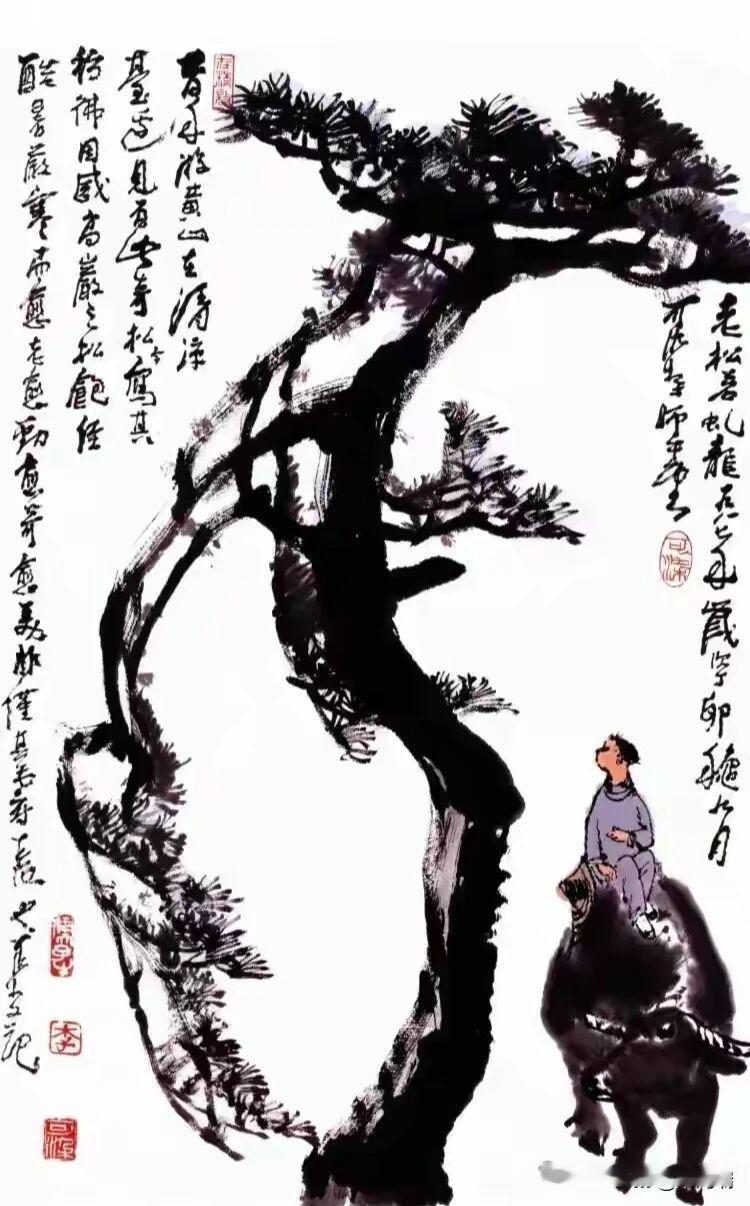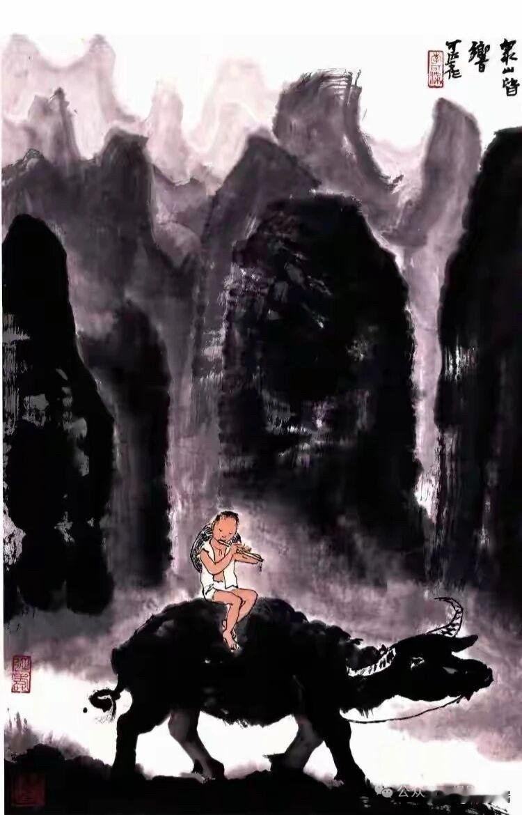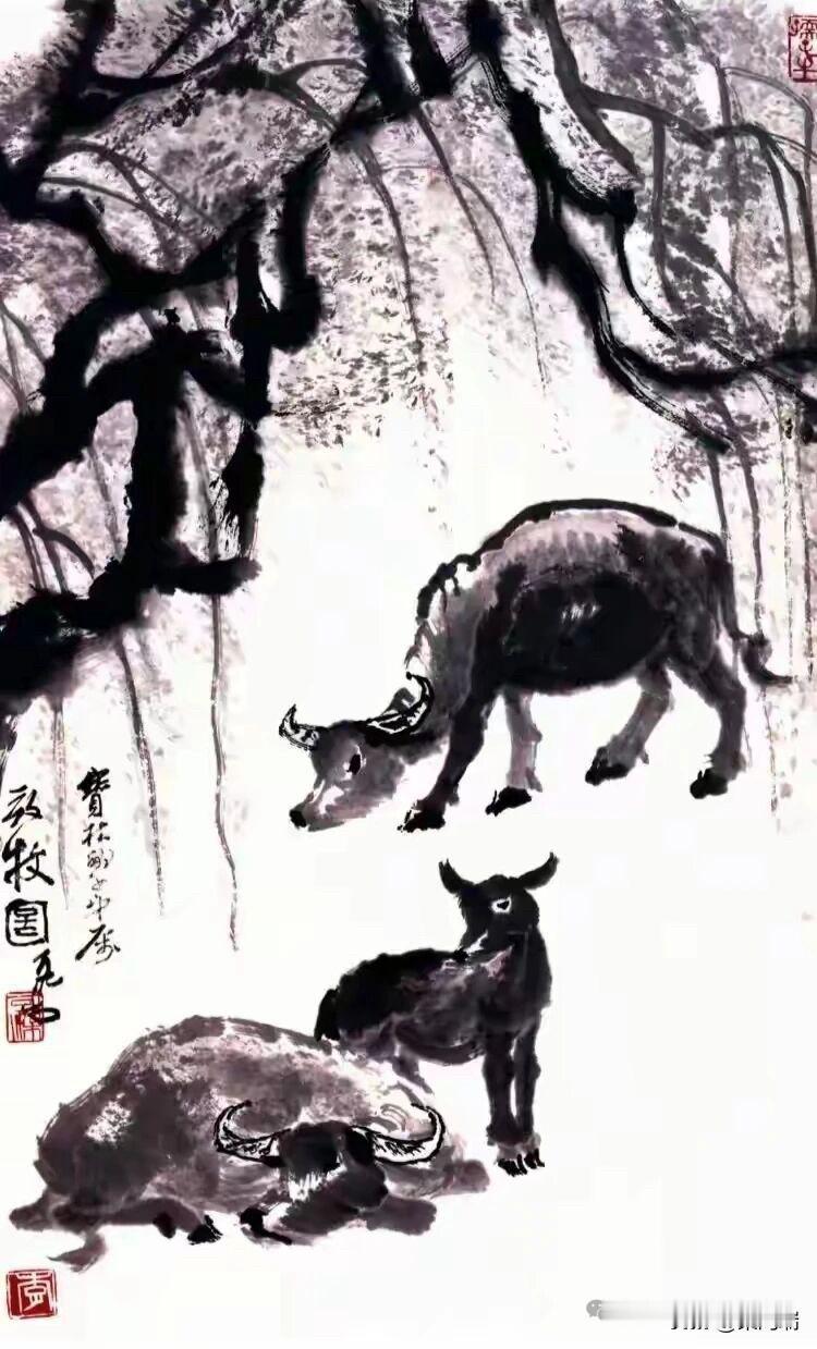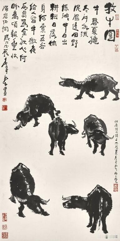 李可染(1907—1989),江苏徐州人。曾师从齐白石、黄宾虹,得前者“墨块”、“墨线”,后者“积墨”、“渍墨”、“破墨”之诀,丰富了传统技法的表现力。借鉴西画的明暗处理,创山水画黑、满、重、亮的新画风。长期执教于中央美术学院。曾任中国美术家协会副主席、中国画研究院院长等职。 擅画山水,人物和牛。他笔下别具一格的牧牛图,与其山水,同样不朽。 李可染的牛,与齐白石的虾、徐悲鸿的马,黄胄的驴,并称为20世纪“中国水墨四绝”。 李可染不故步自封,也不盲目跟风,在自己的画作中融入文人画的意境,形成自己的艺术风格。 李可染的牧牛图所表现的场景在乡村生活中随处可见,可一经他妙笔皴擦,勾勒点染,却别有洞天,境界顿时开阔起来。这种在农村中随处可见的生活场景,在李可染先生的笔下,却变成一幅优美的图画,充分体现他对水牛和江南水乡的热爱,和对田园生活的向往。