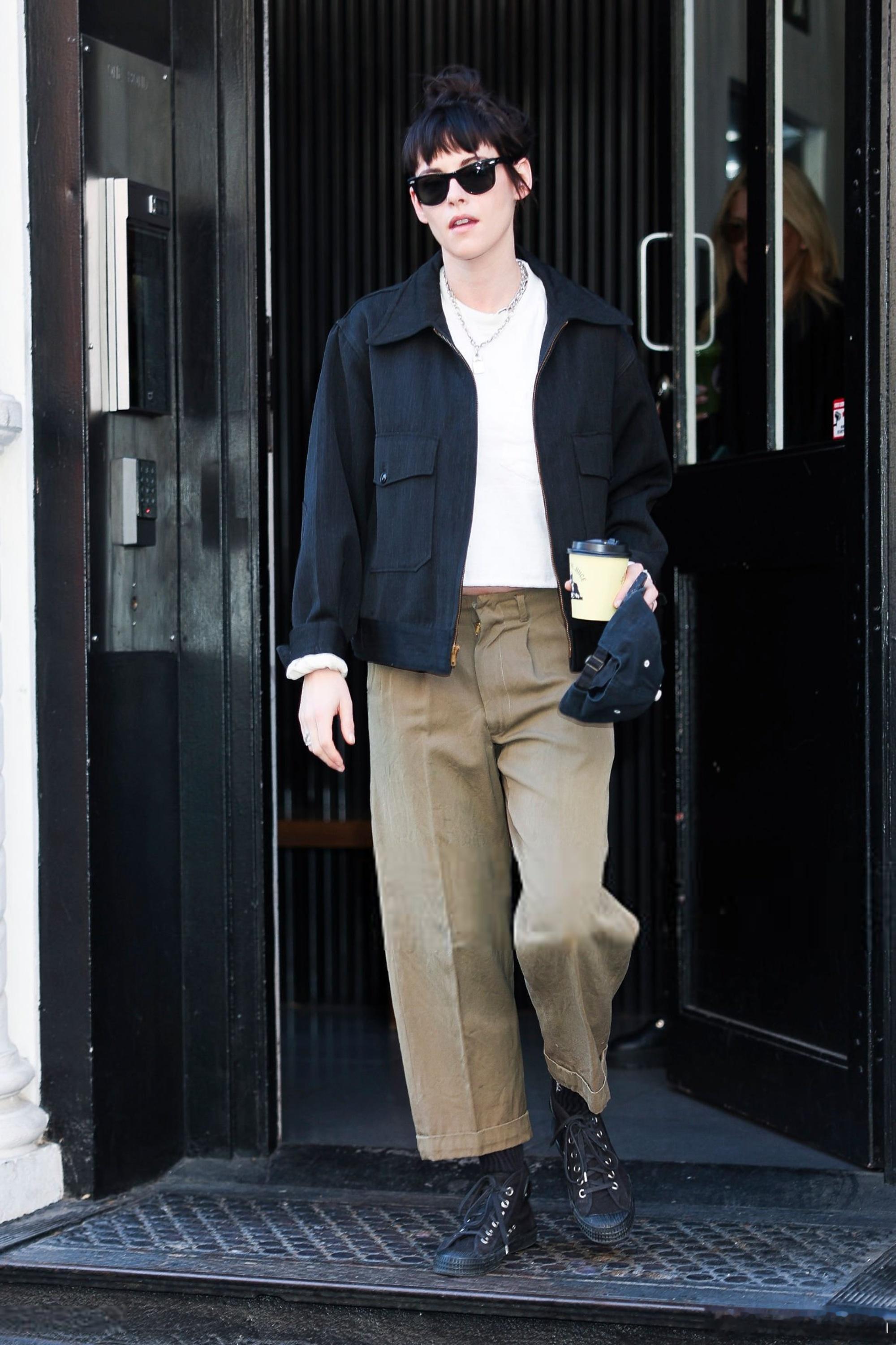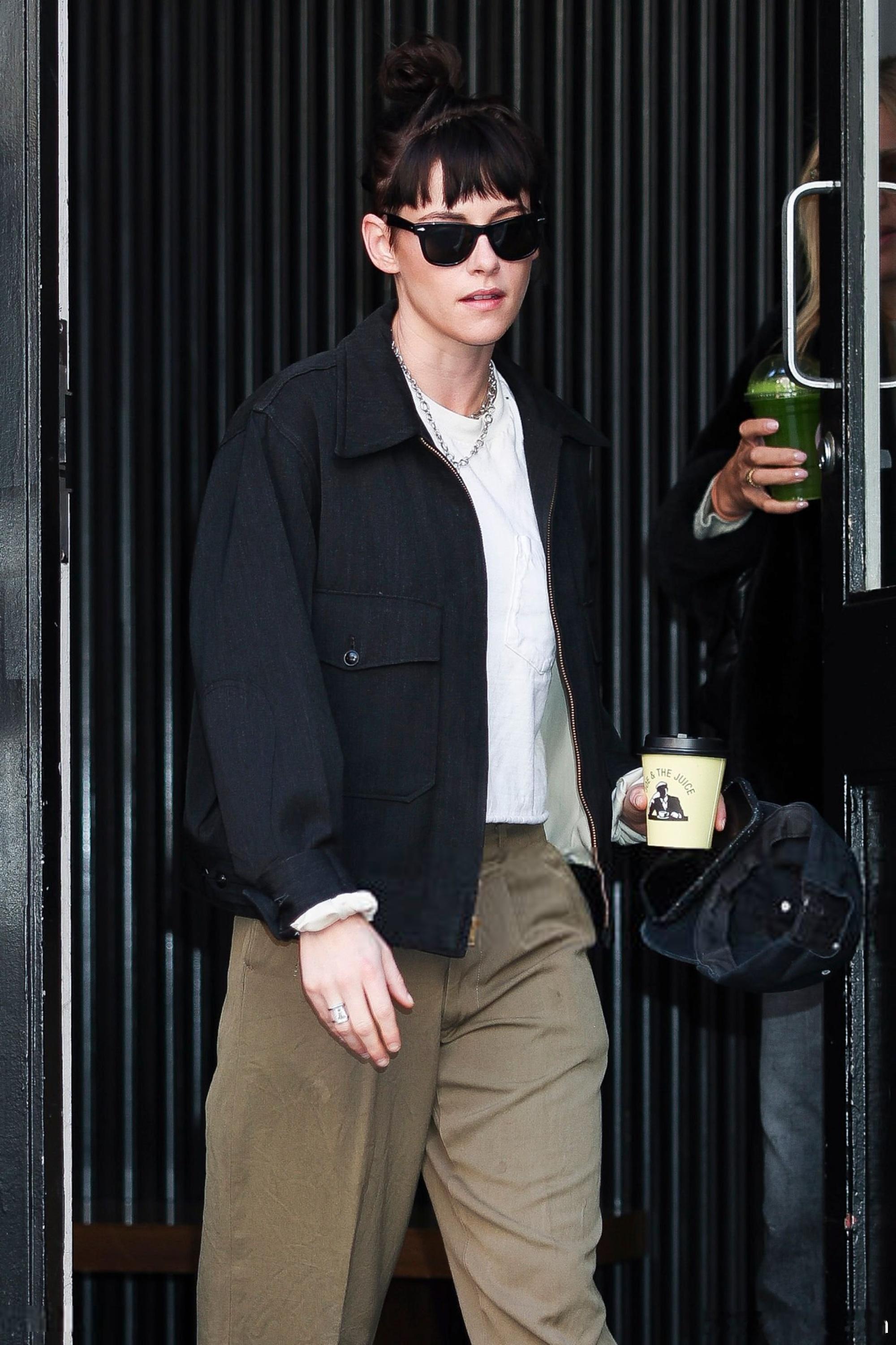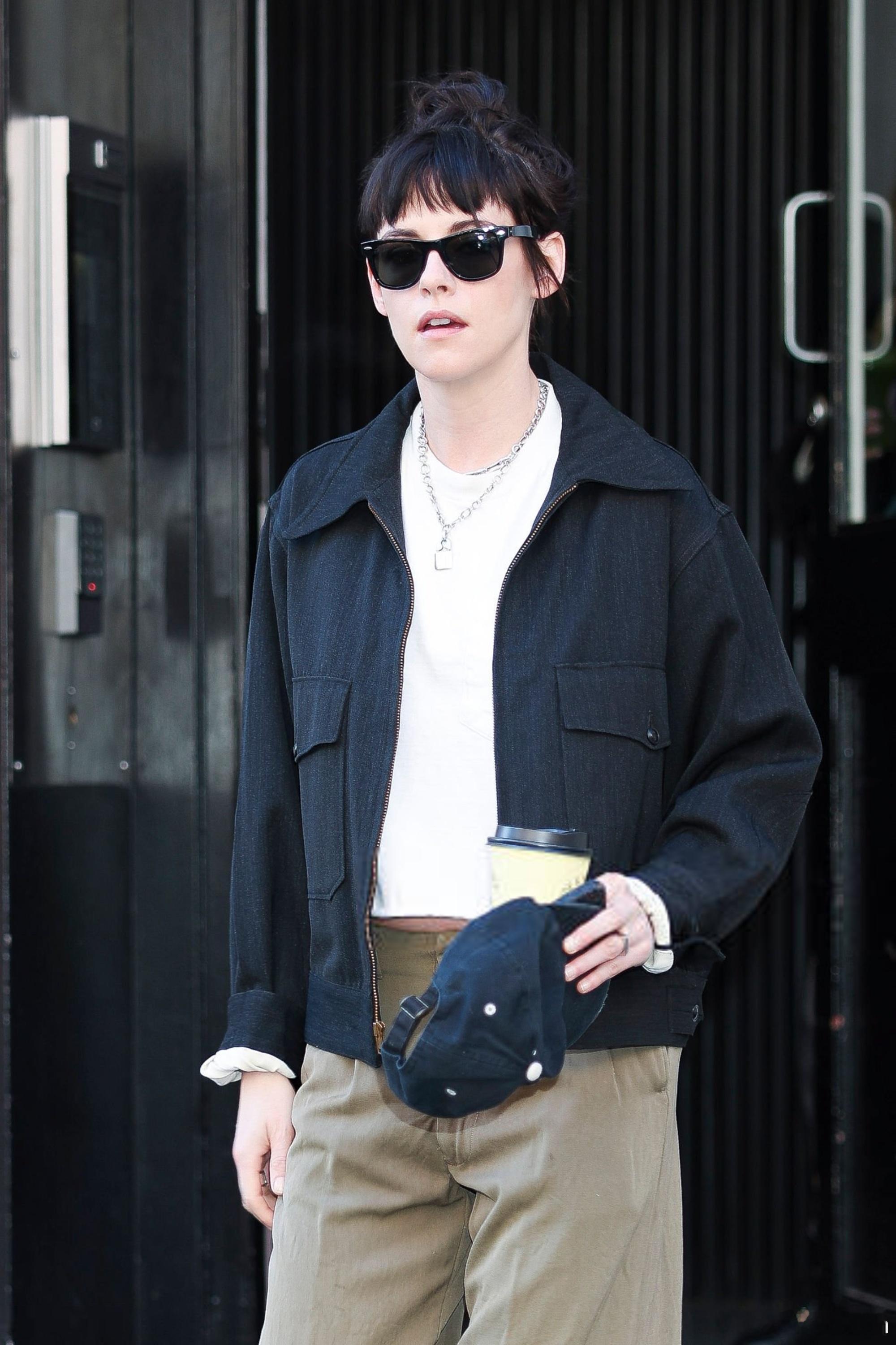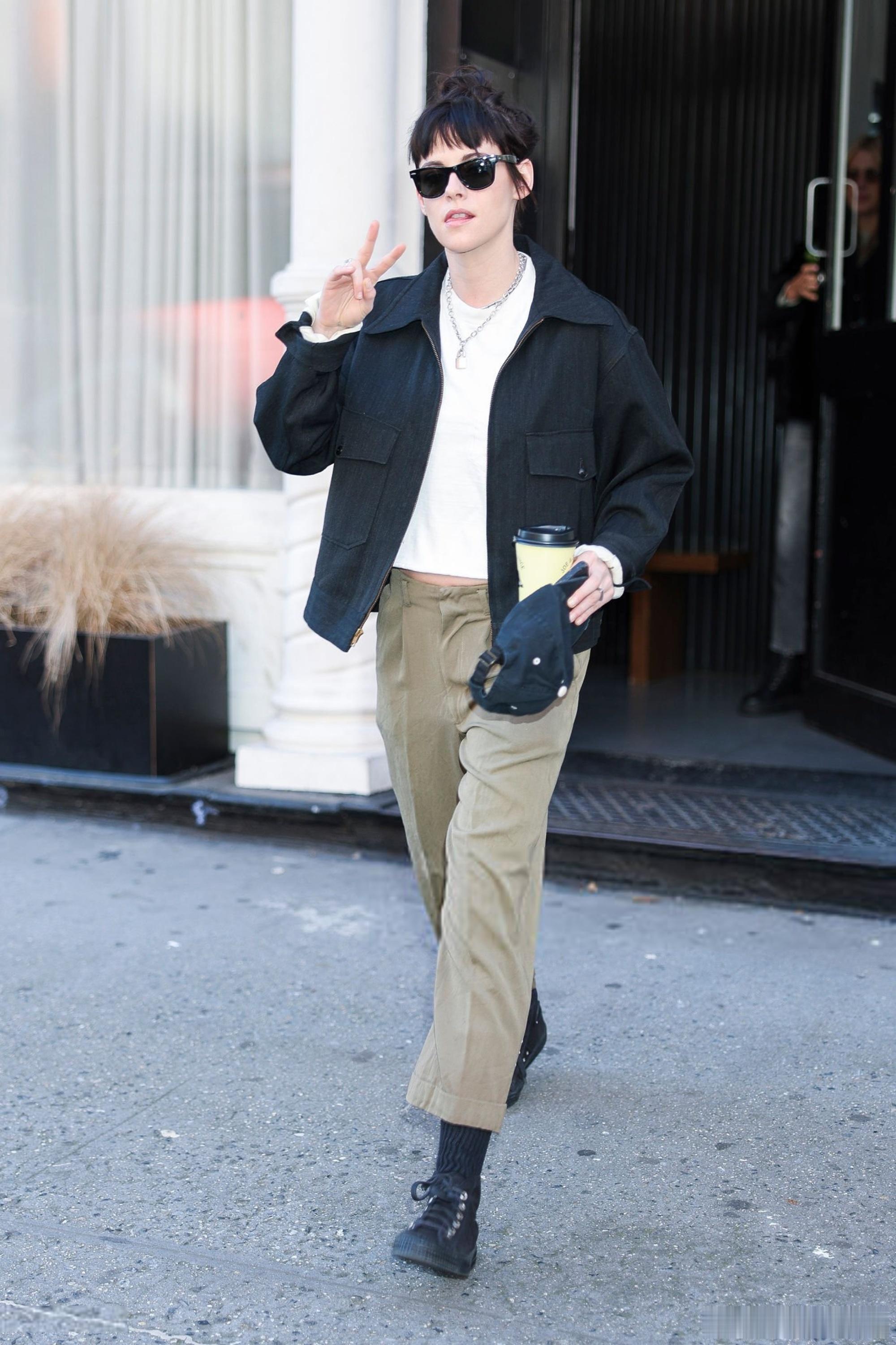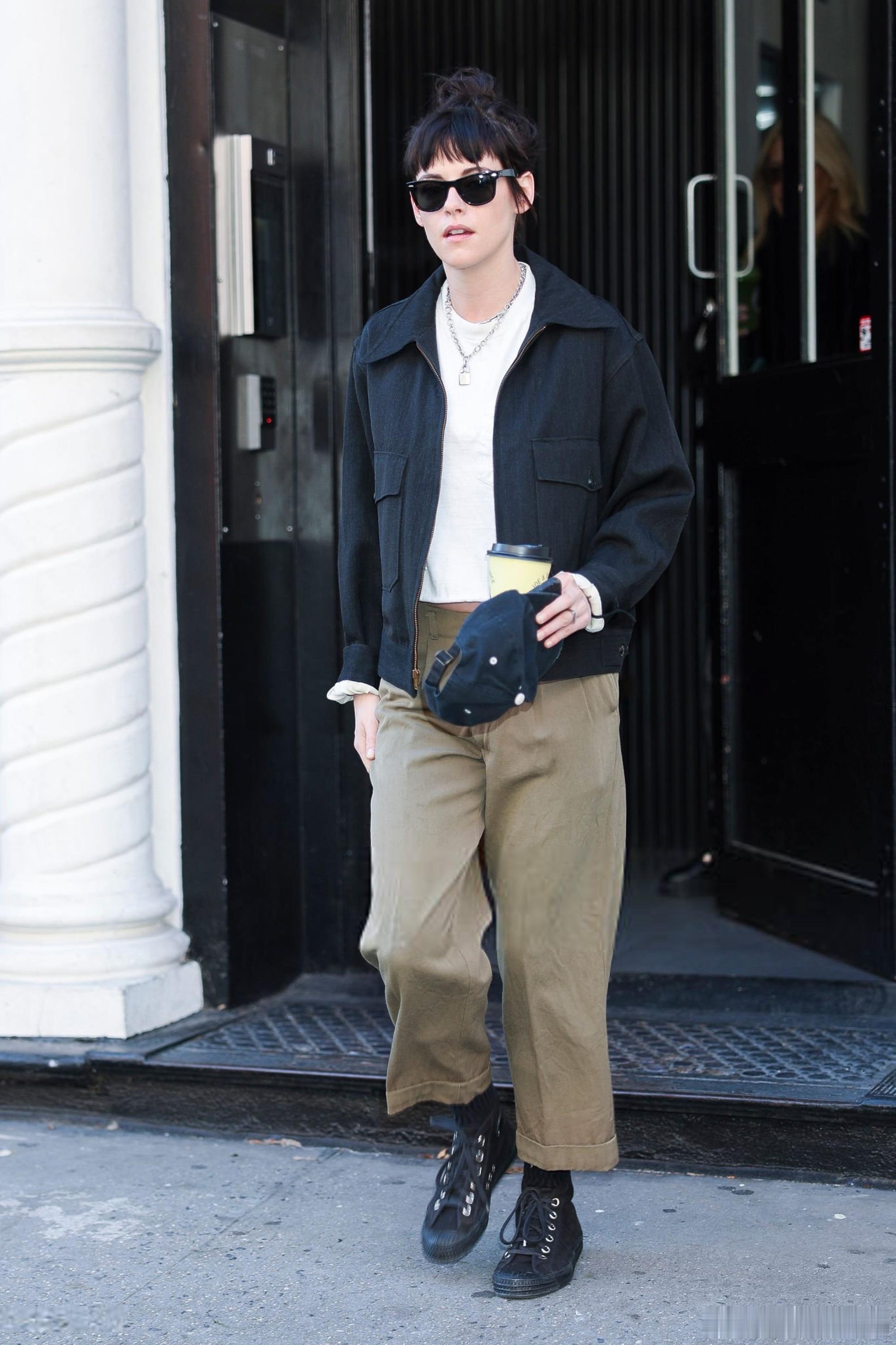 Kristen Stewart克里斯汀斯图尔特在纽约外出,小K手捧咖啡离开住所出门干活