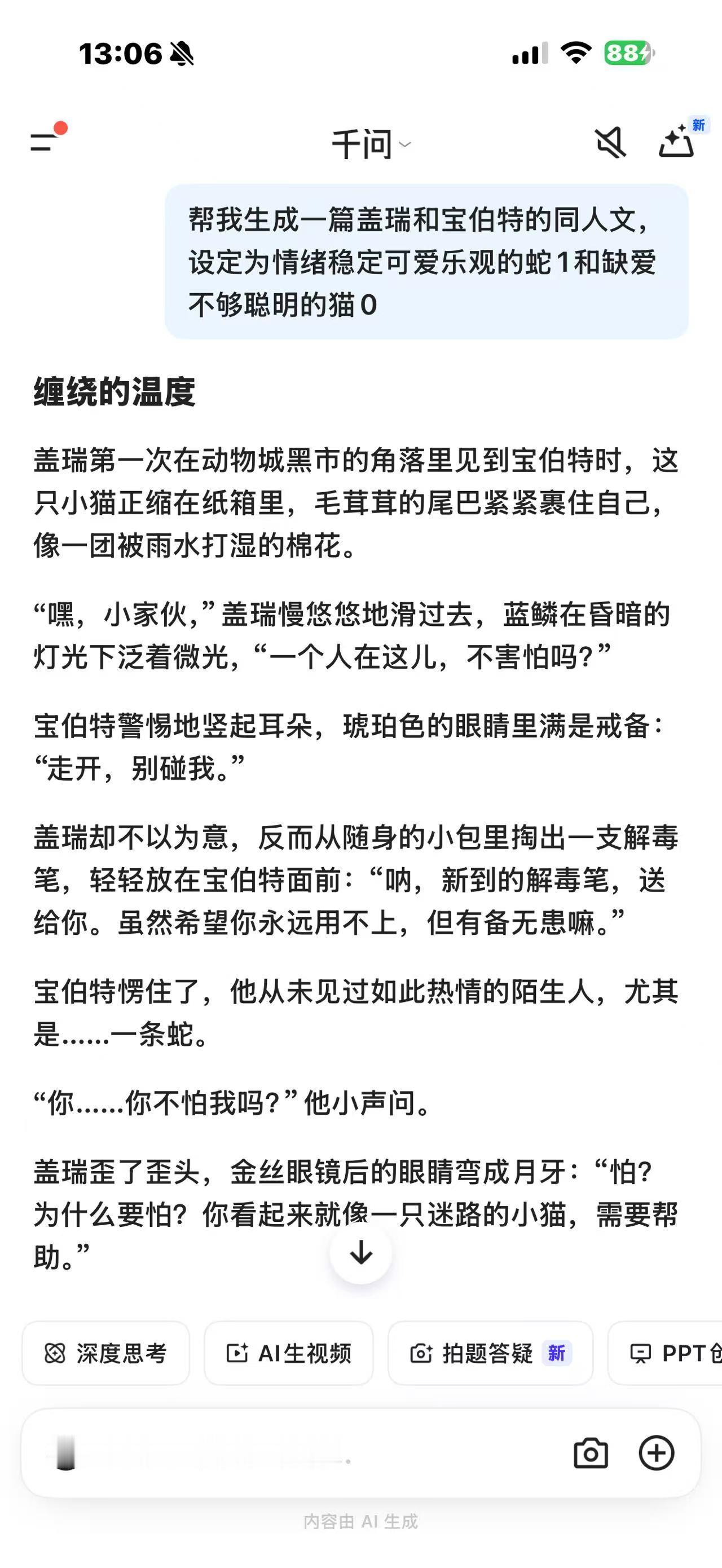 00后有自己的ai磕爱文学 看了疯狂动物城2后,到底有没有人和我一样疯狂的磕到宝伯特和盖瑞!!!现在大家产粮的速度完全跟不上我吃饭的速度,不过还好我可以用千问产出美美的粮~这对cp我先磕为敬了。疯狂动物城2