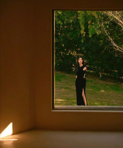 张俪的这身穿搭太有故事感了,黑裙勾勒出完美的身形,背景仿佛就是森林深处,她就是那只高贵的黑天鹅,静静地吸引着所有人的目光。