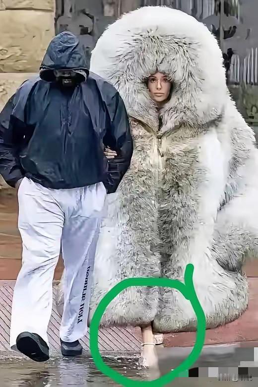 事实证明,上身穿的特别臃肿的时候,脚脖子显得特别细。