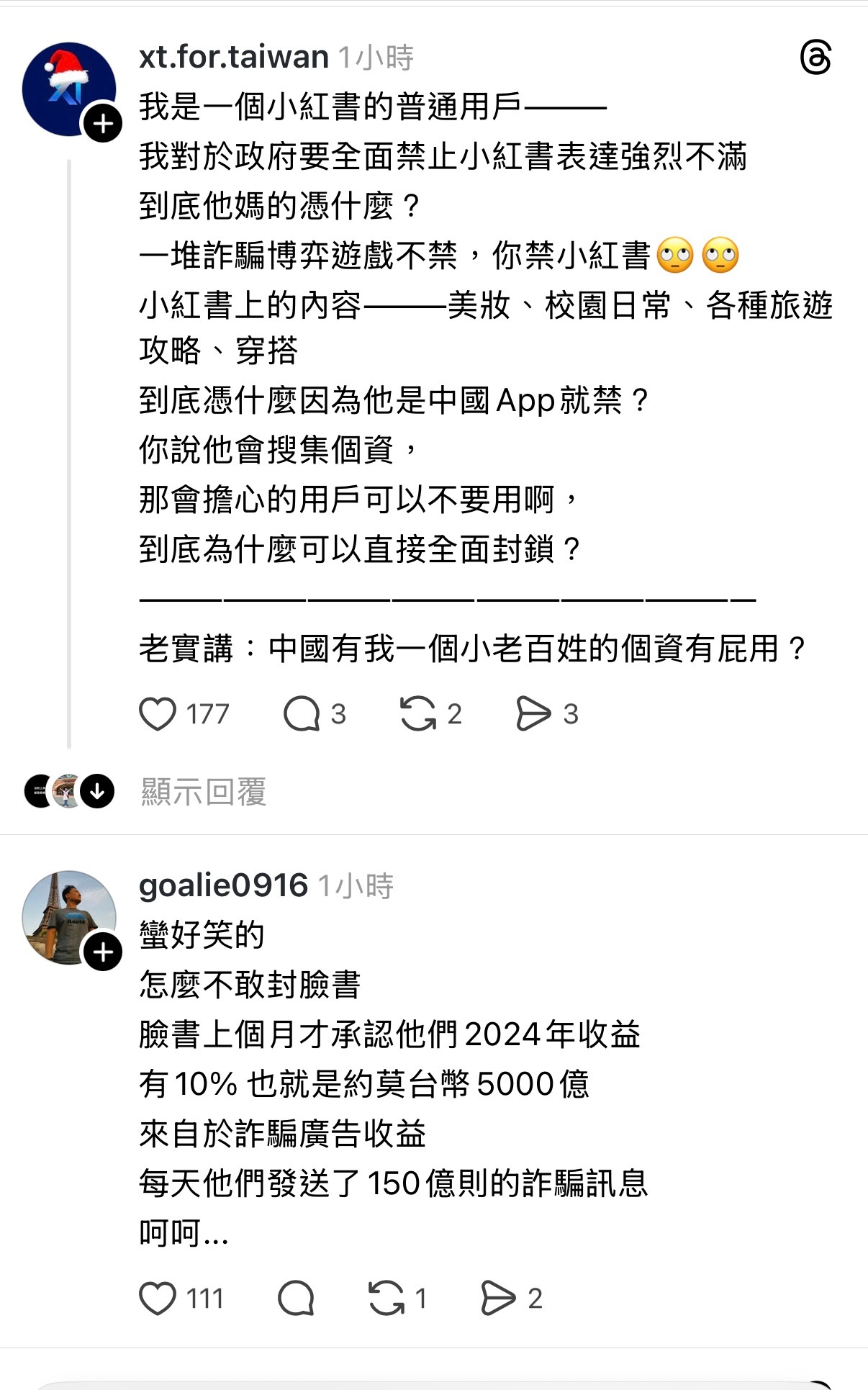台湾封锁小红书一年引发热议⬇️