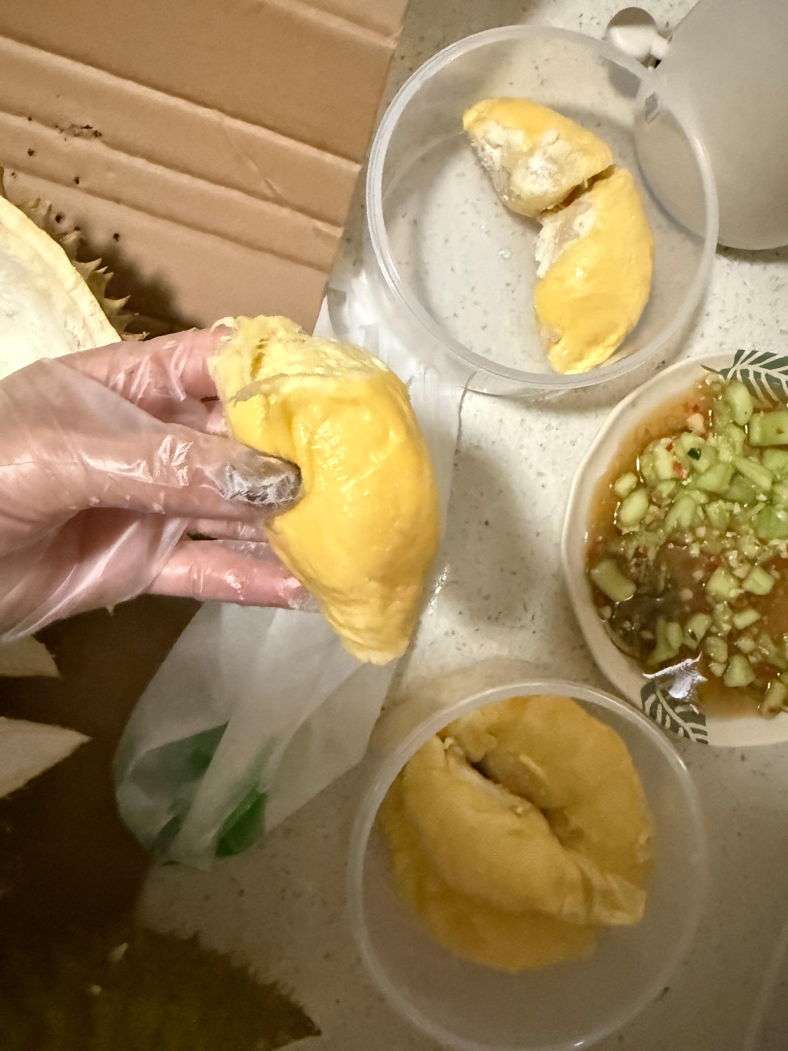 这榴莲长得这么饱满好看!开出来怎么这么点肉不够我吃两口呜呜呜今天小卷长胖了吗