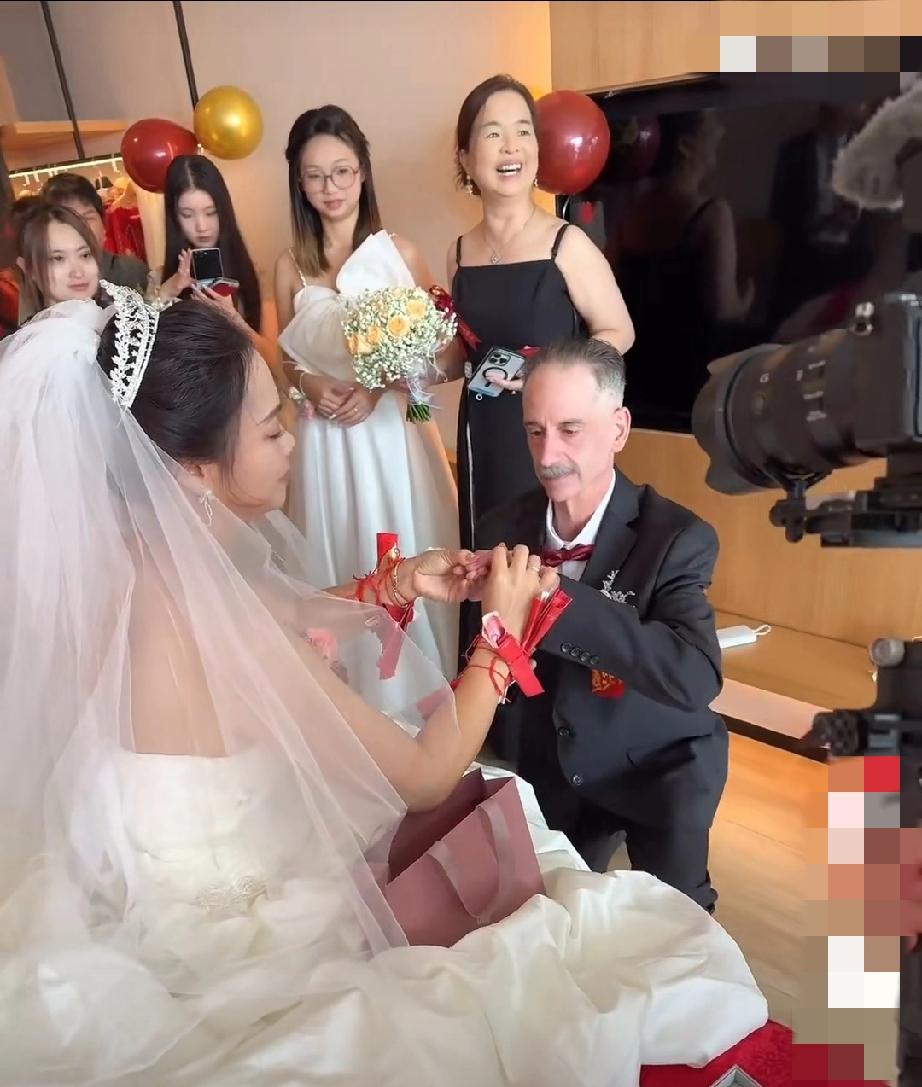 跨国婚姻,女子和白人老头喜结连理,众多亲朋好友也是纷纷送上自己的祝福…… 网友表示疑惑:新郎胡子都开始发白了,她嫁给这个老外到底图点啥呢? 可能图这个白人老头的钱、房子、国籍,就是不可能图他岁数大,或者图老外的真爱!这一对总不可能比张纪中、范曾那两对年龄差还来的大吧!!!