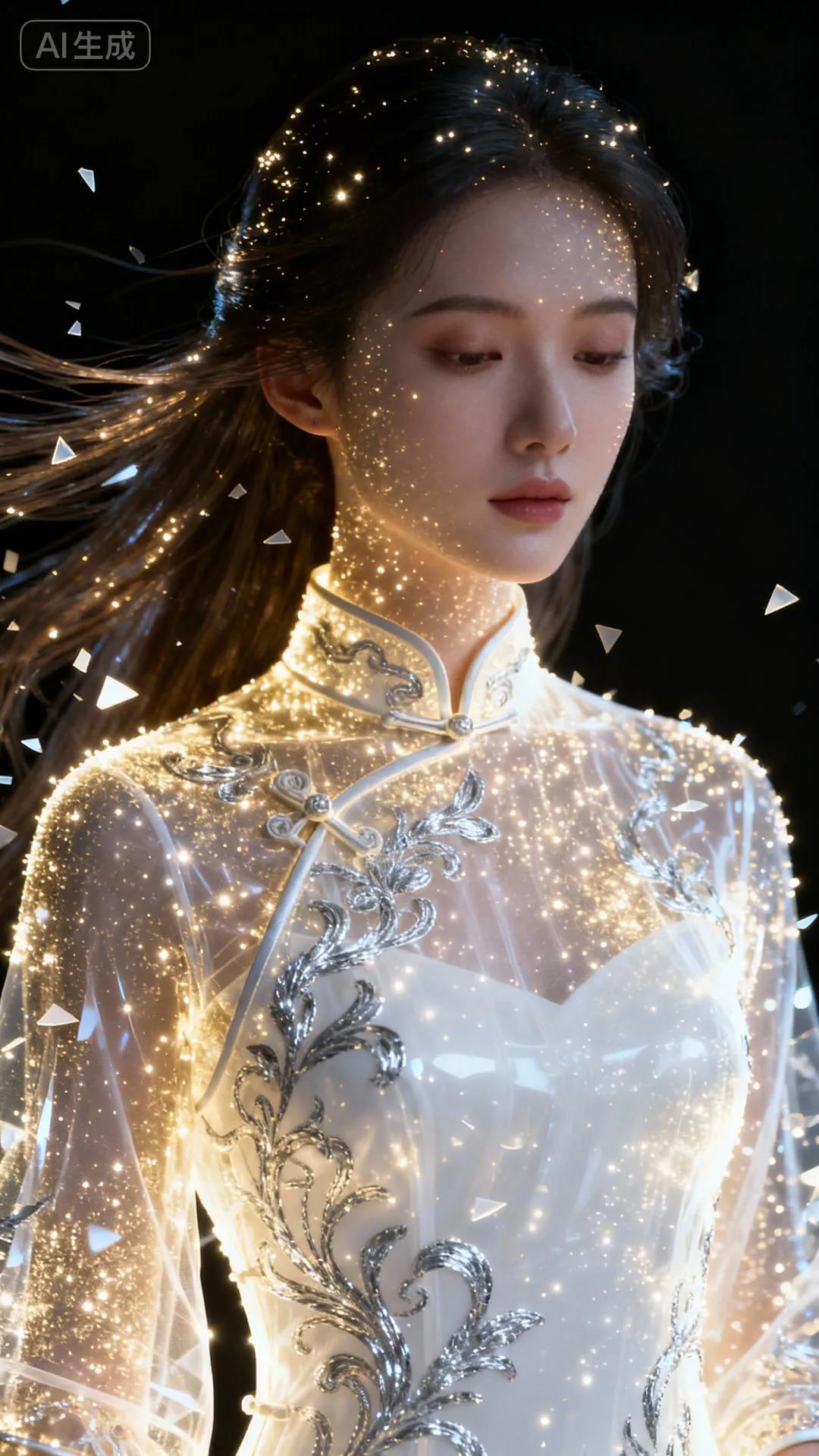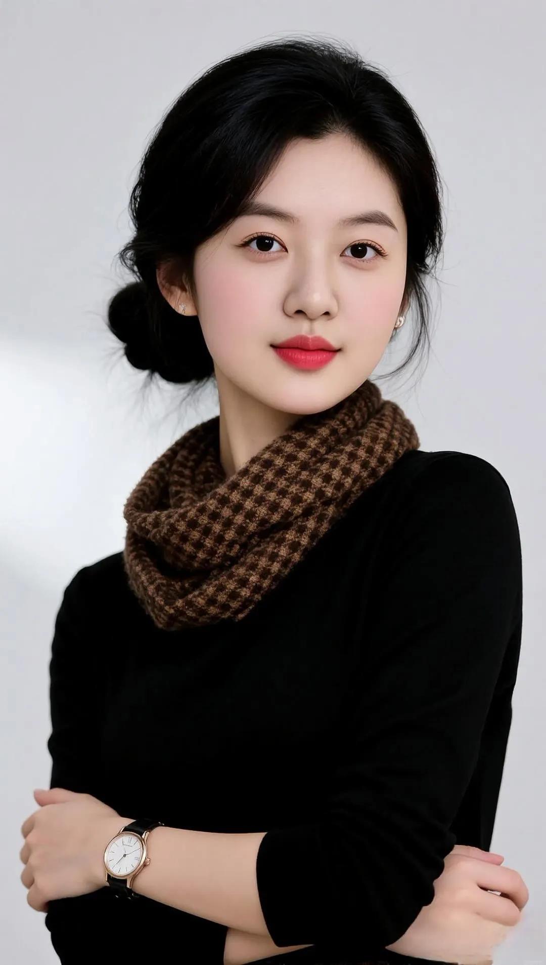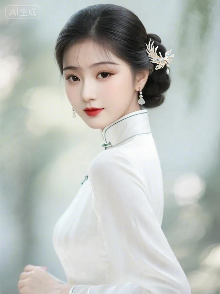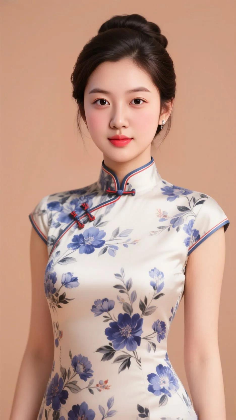 优雅旗袍少女,红唇与黑发相映成趣,古典韵味十足。