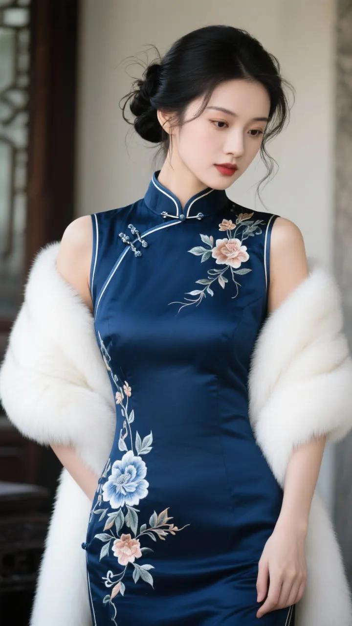 经典的立领设计是黑色旗袍的灵魂,能修饰颈部线条,增添端庄感。旗袍多采用修身版型,