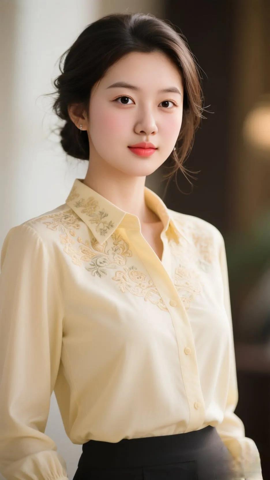 优雅旗袍少女,红唇与黑发相映成趣,古典韵味十足。