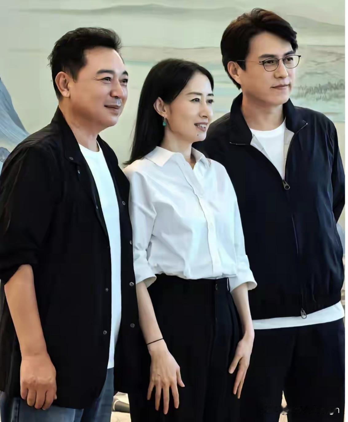 这张三位演员的合照,给人一种很清爽的感觉。 刘敏涛站在最中间,穿着白衬衫把下摆利落的扎进黑裤子里,整个人显得特别干练精神。 张晞临和靳东分别站在左右边,两人外穿白衬衫配里边的白T恤,仨人一身黑白配,看着干净又舒服。 这三位可是实打实的演技派,往这一站就有气场。而且刘敏涛是越来越年轻漂亮了,状态好的让人眼前一亮。