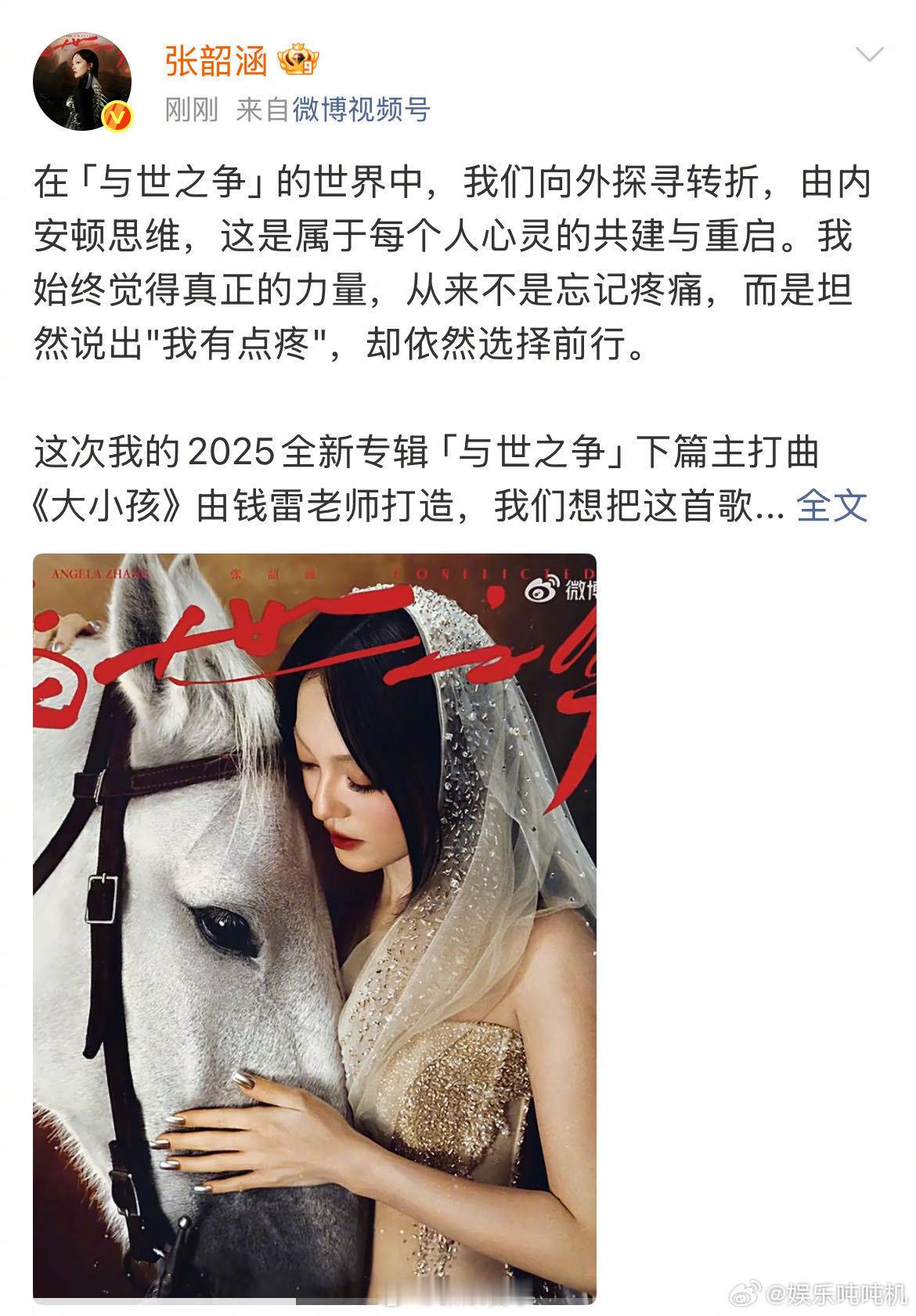 张韶涵这15S是我能听的吗 张韶涵的嗓音依旧那么有辨识度,一开口就能让人静下心来。大小孩的预告虽然短暂,却充满画面感,让人忍不住想象完整歌曲的模样。万物皆可音乐