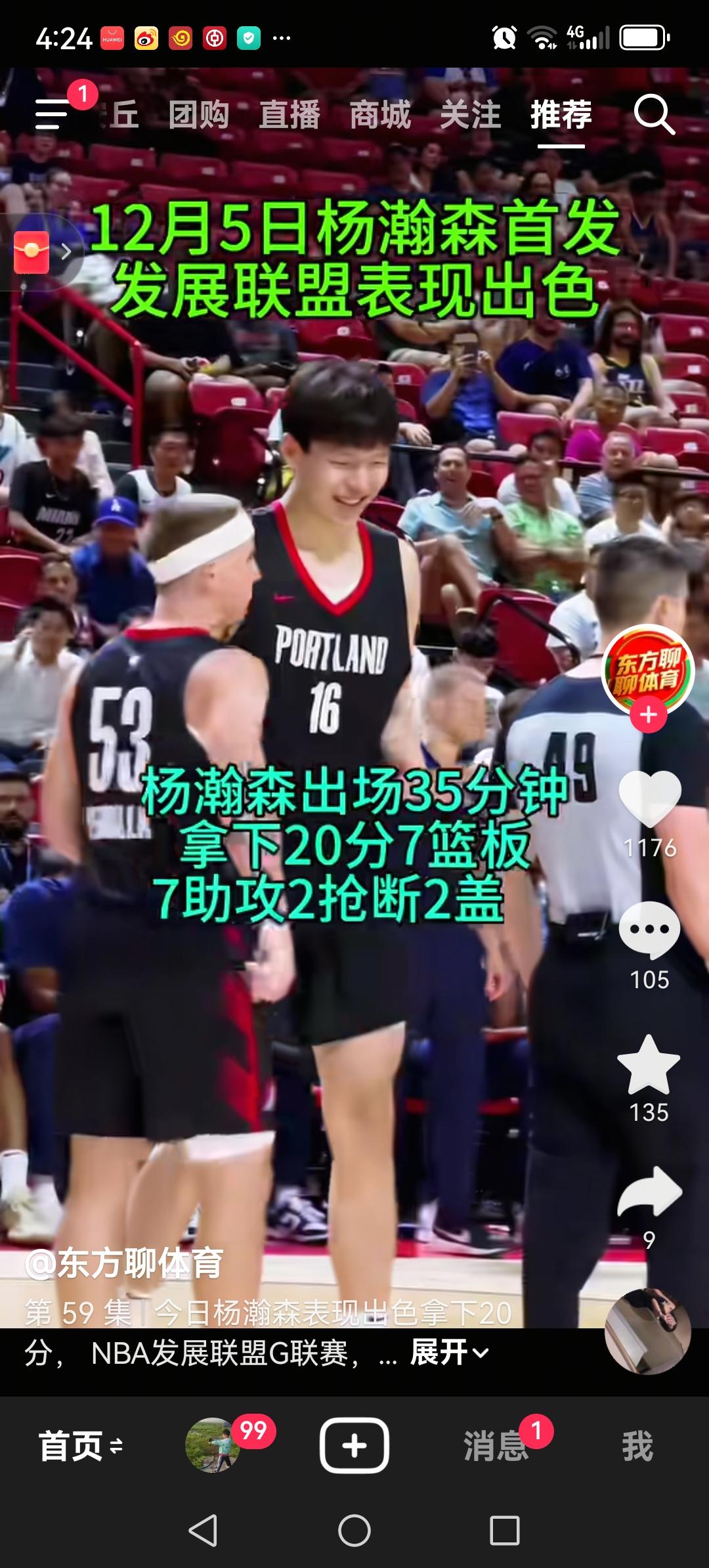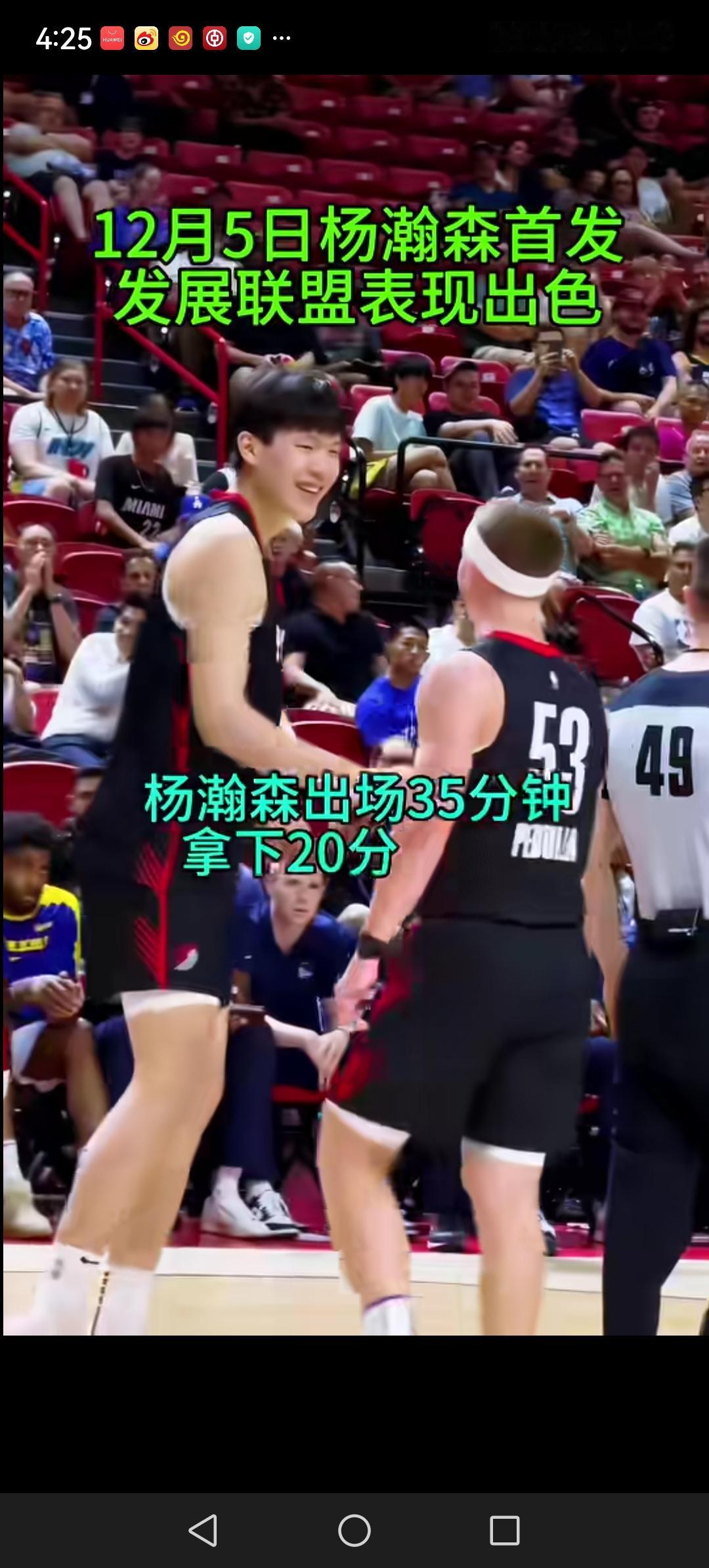 杨瀚森下放到发展联盟,打出高光表现。出战35分钟,拿下20分7篮板7助攻2抢断2盖帽,但球队加时最终负于对手。 加时赛由于体力不支,没有打出统治力, 很遗憾没有帮助球队赢得胜利。但主教练对他非常信任,关键时刻,想让杨瀚森力挽狂澜,但杨汉森对关键球处理能力还是明显不足。 加油,杨瀚森!