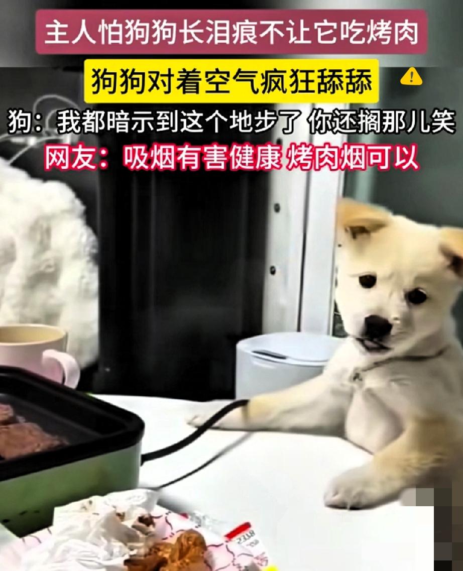 笑不活了! 北京这只“空气干饭汪”,把馋嘴的分寸感拿捏得死死的! 主人周末约朋友在家烤烤肉,怕狗狗馋还特意先喂饱了它,结果烤肉香直接冲破房门,把熟睡的狗子勾了出来。 它不敢上桌抢,也不吵着要,就蹲在桌边对着烤肉烟雾疯狂舔空气,闭着眼咽口水,哈喇子都快流到地上了,那架势像是要把香味全“吃”进肚子里。 主人不让吃是怕烤肉高盐长泪痕、伤肠胃,而狗狗懂规矩不胡闹,只用这种可爱的方式暗示,这双向的在乎才最戳人! 原来宠物的懂事从不是不馋,而是再想吃也愿意听主人的话。 你家毛孩子遇到爱吃的东西,会用什么可爱方式暗示你呀?