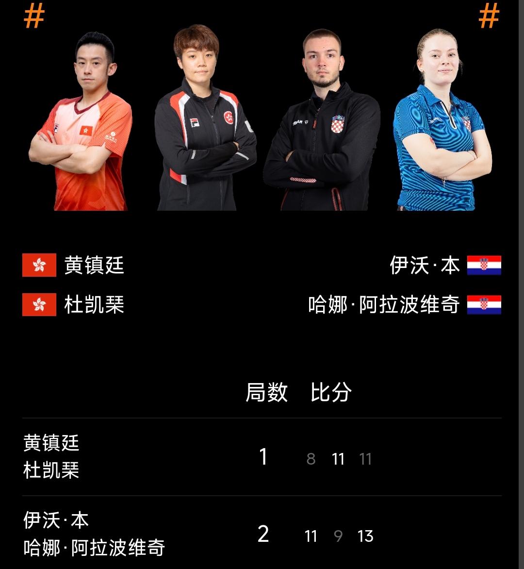 混团世界杯丨克罗地亚8-6中国香港 2025年成都混合团体世界杯 第二阶段循环赛,克罗地亚对阵中国香港,在首盘混双黄镇廷/杜凯琹1-2不敌伊沃本/阿拉波维奇之后,中国香港队失去了先机,之后朱成竹2-1战胜莱科瓦奇扳平总比分,但第三盘男单克罗地亚绝对主力普卡尔3-0横扫林兆恒彻底拉开比分,第四盘女双比赛,叶格/莱科瓦奇收获1分,吴咏琳/朱成竹拿下2分!将总比分追至5比7! 第五盘男双,双方各胜一局,伊沃本/柯吉克助力克罗地亚8-6战胜中国香港! 克罗地亚收获了第二阶段的第二场胜利!