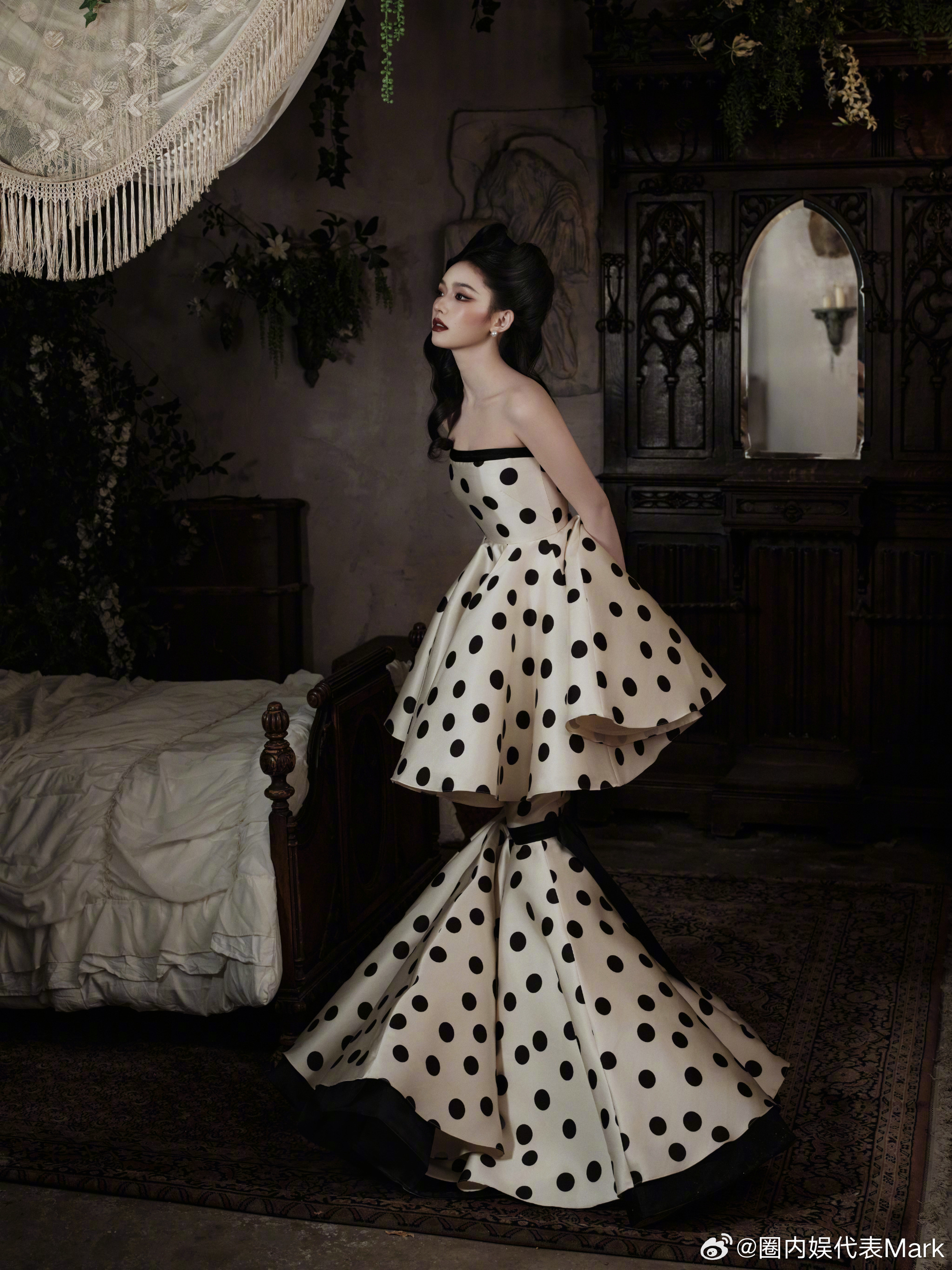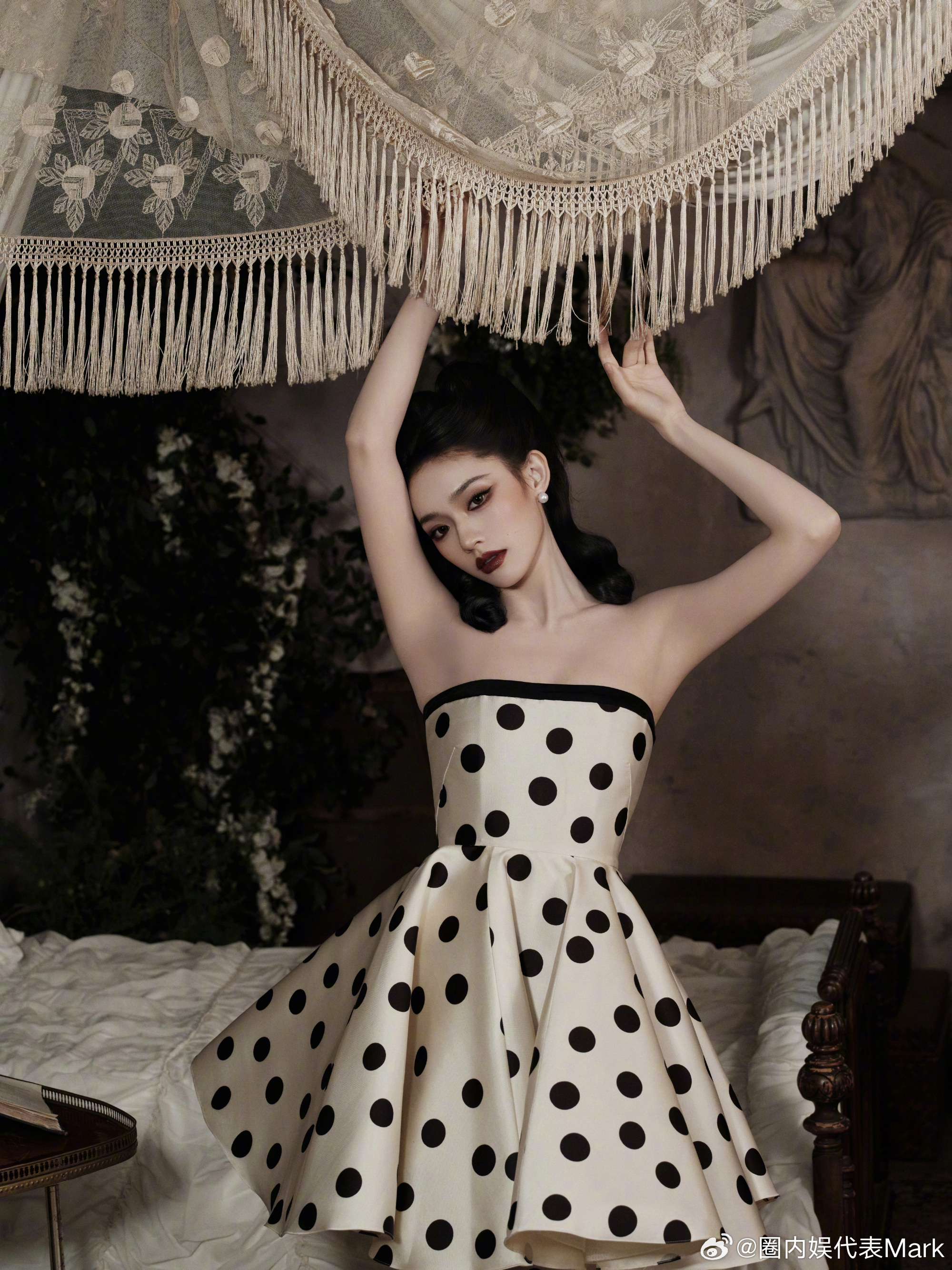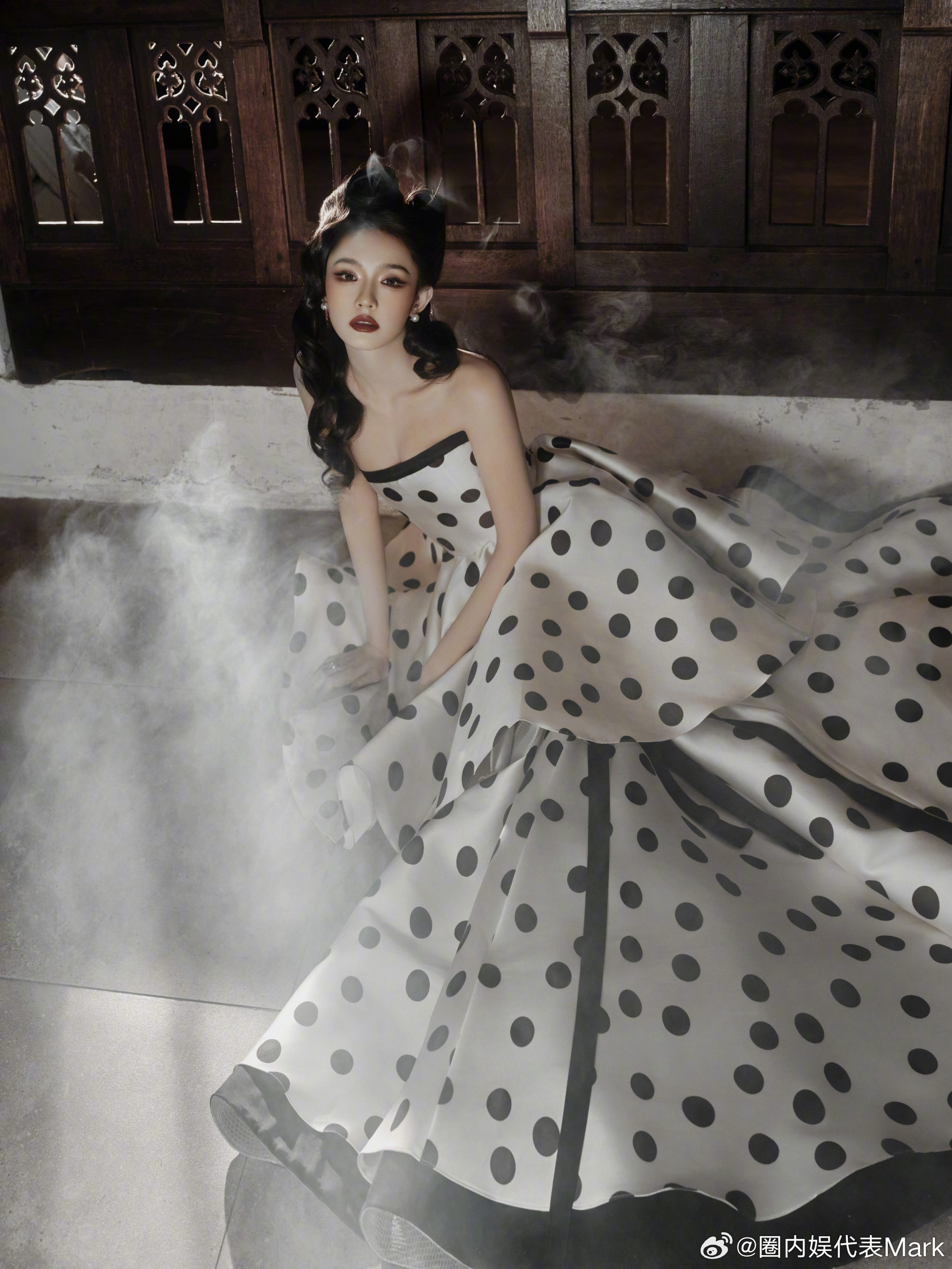 尖叫之夜出图 林允这波复古波点裙杀疯了!蓬松猫耳发 + 黑白波点裙,复古美人氛围感直接焊在身上,每一帧都像从老电影里走出来的~