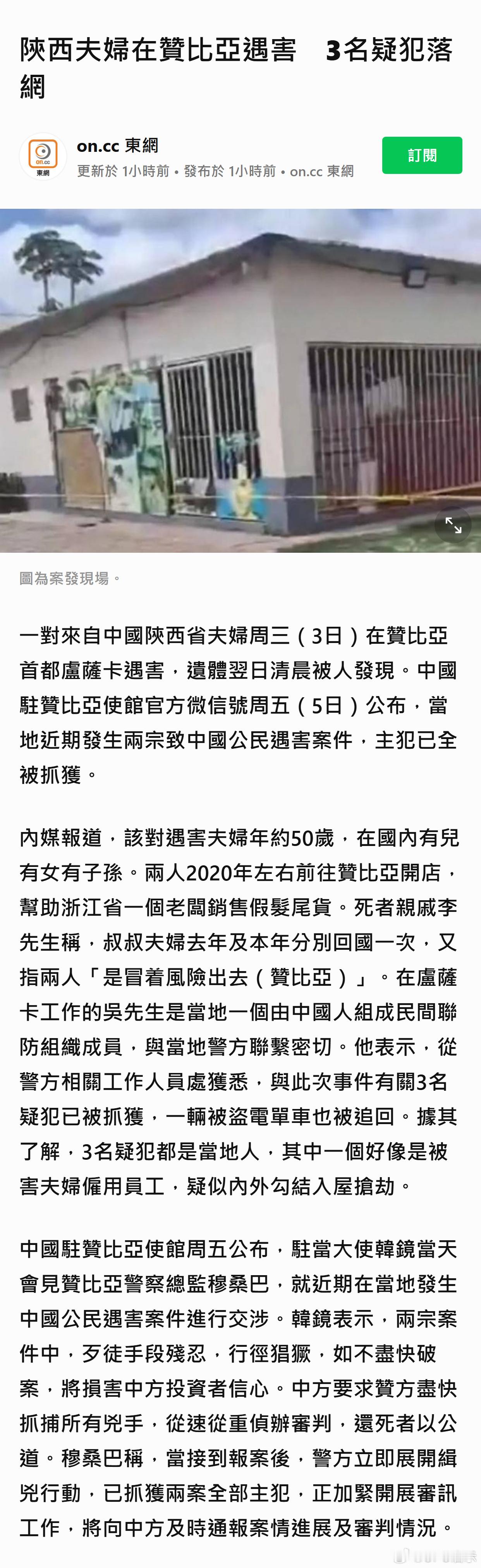 陕西夫妇在赞比亚遇害 3名疑犯落网