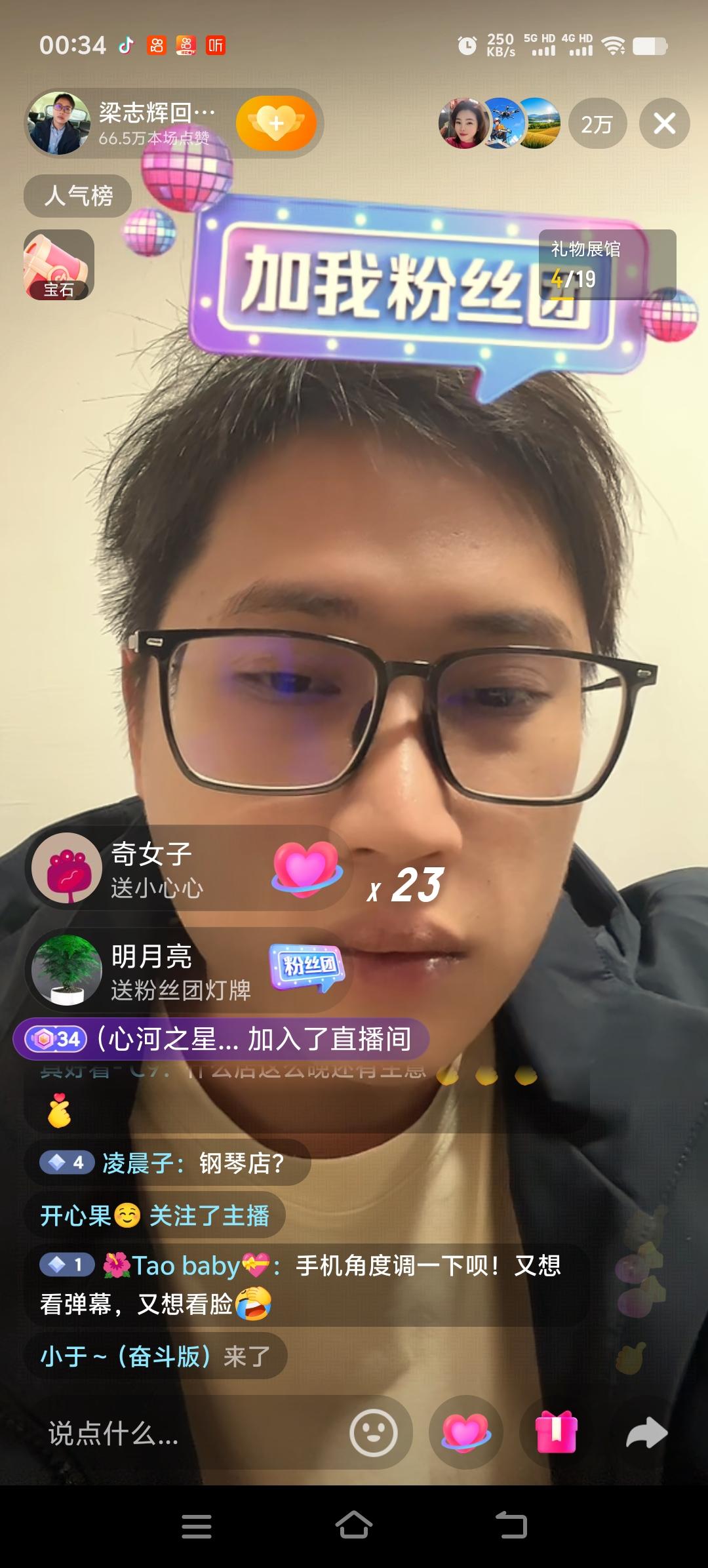 梁志辉今晚开播才几分钟,就把他爹一天的人气值给碾压了。看来大家更青睐这个广东小伙。志辉实在太逗了,他问粉丝们有没有吃宵夜,还是那种问了也不请客的。而且开播没多久就下播了,说是有客户要来。 也有粉丝调侃,让志辉说“公主请睡觉”,他还真就说了。他又多了个外号叫“江西老表”,这昵称还是他自己说出来的。