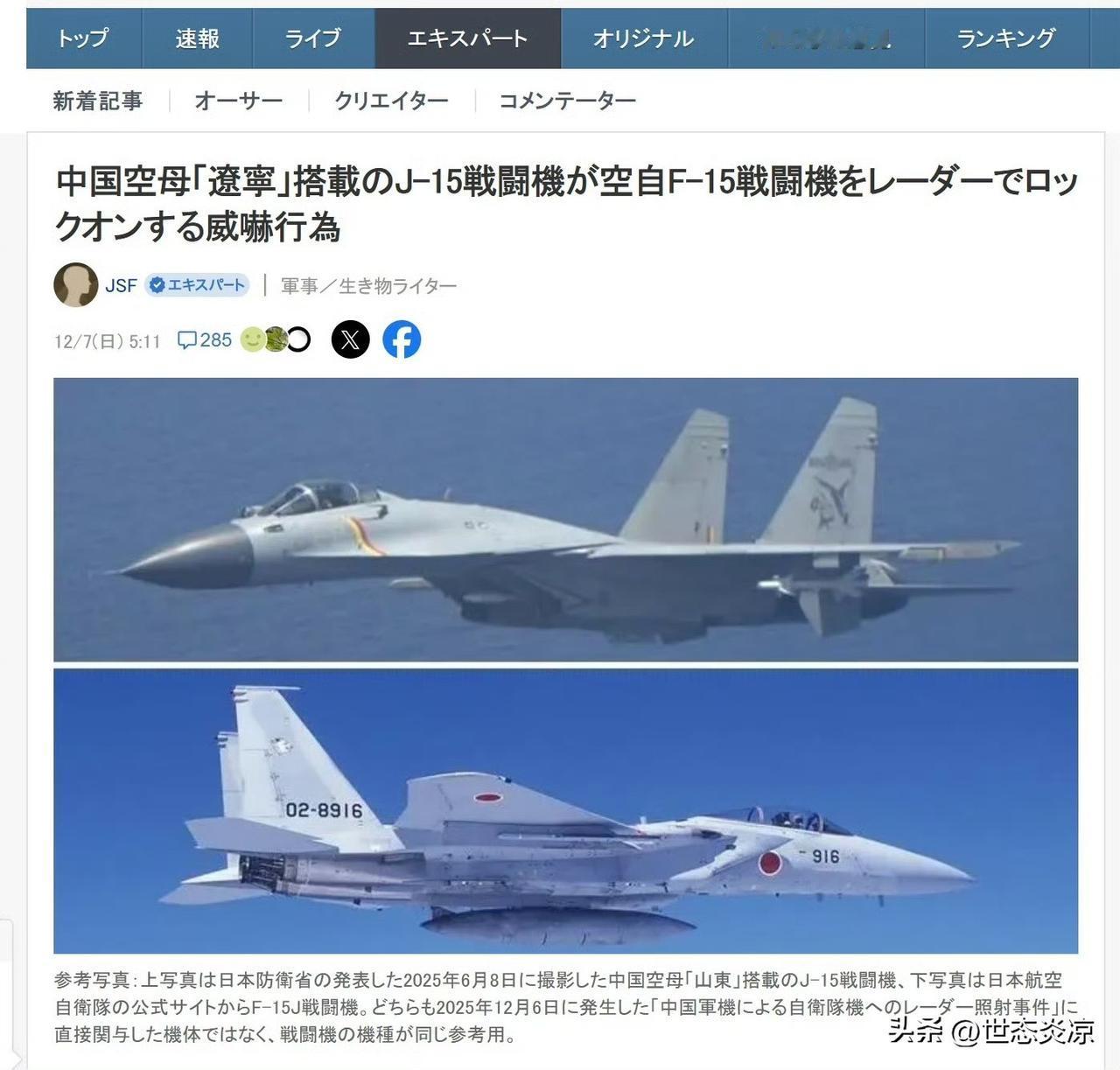 这次让你见识一下什么是天照大神,日本媒体连夜紧急报道辽宁舰上的歼 - 15战机两次开启雷达照射日本F - 15J战机一事。我想说,这次仅仅是雷达照射,下次可就直接开火控雷达锁定了。 日本只提被雷达照射,背后原因绝口不提,妄图把局势紧张的“锅”甩给中国,这可是日本惯用的手段。难不成你老老实实待着,还会被照射吗?在中国航母编队进行自由航行期间,日本派军机靠近意欲何为?如此行径,怎能不被中国舰载机用雷达照射?分明是日本F - 15J妄图侵闯辽宁舰演习区域,这才遭到歼 - 15的警告、拦截与驱离。 歼-15舰载机 歼-15D 歼15电子战机 歼 15