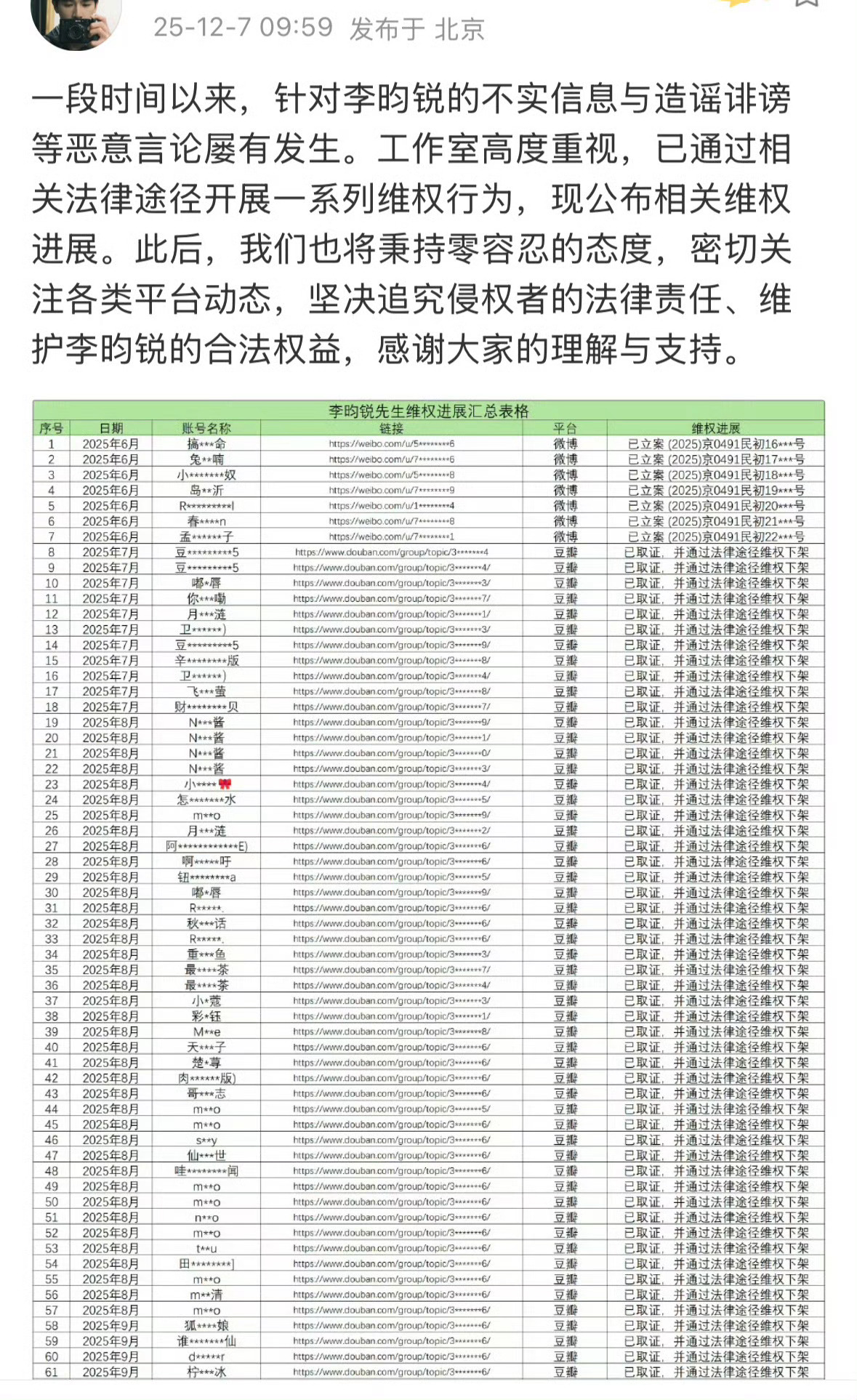 李昀锐方发了那么那么长的告嘿名单