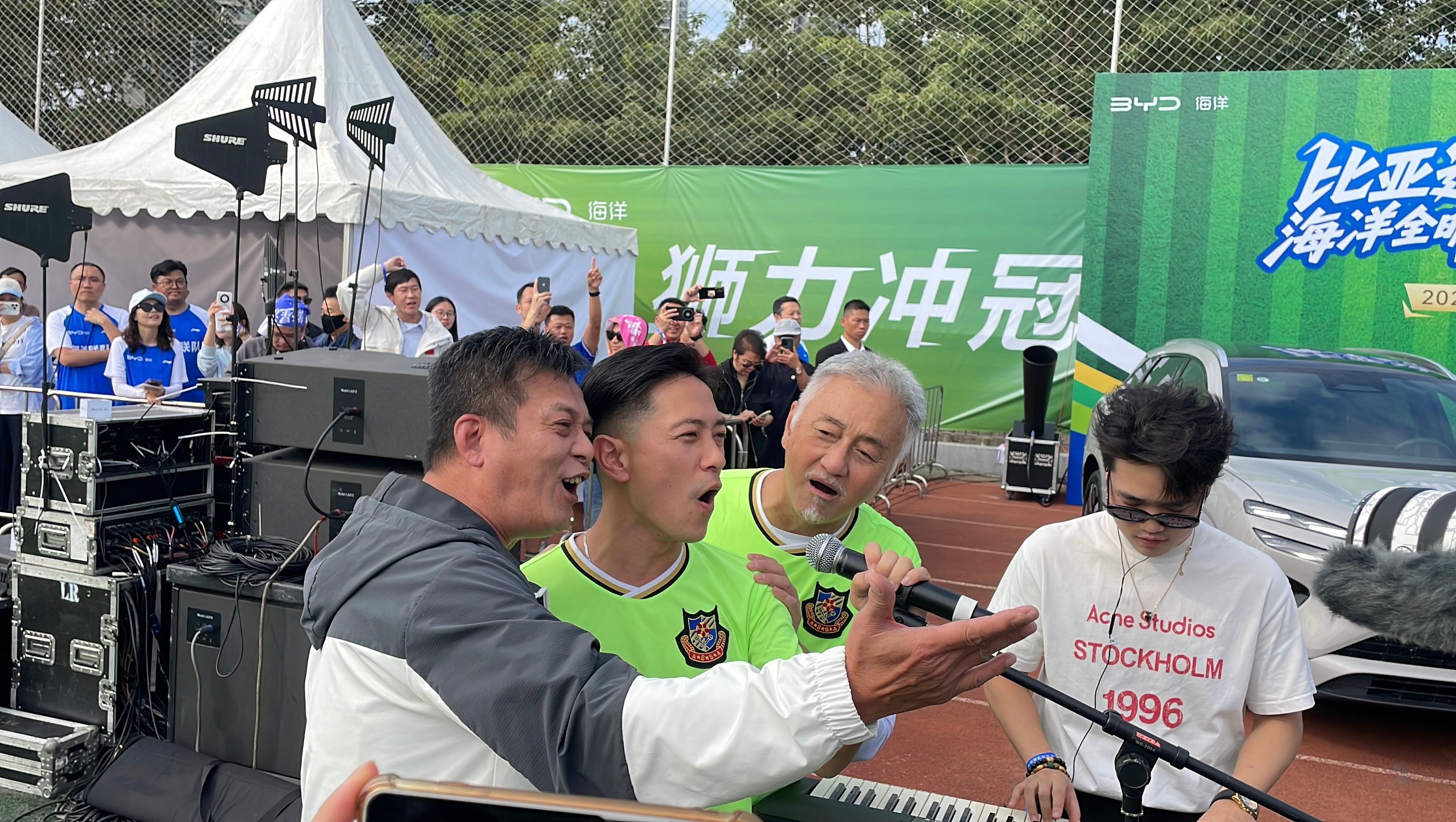 当比亚迪海洋车主踢馆香港明星足球队好热闹!好有过年感觉!集邮成功哈哈哈!系咪个个都熟口熟面🍜好似翻到乡下见到好多久没见面的亲戚一样!子雄哥!家英哥!兆尊!天明!华哥!劲哥!我真系睇住你地嘎片长大噶!哈哈哈哈哈!大v聊车 厚着面皮拿到了黄日华的签名刚好有件比亚迪衣服在!比亚迪