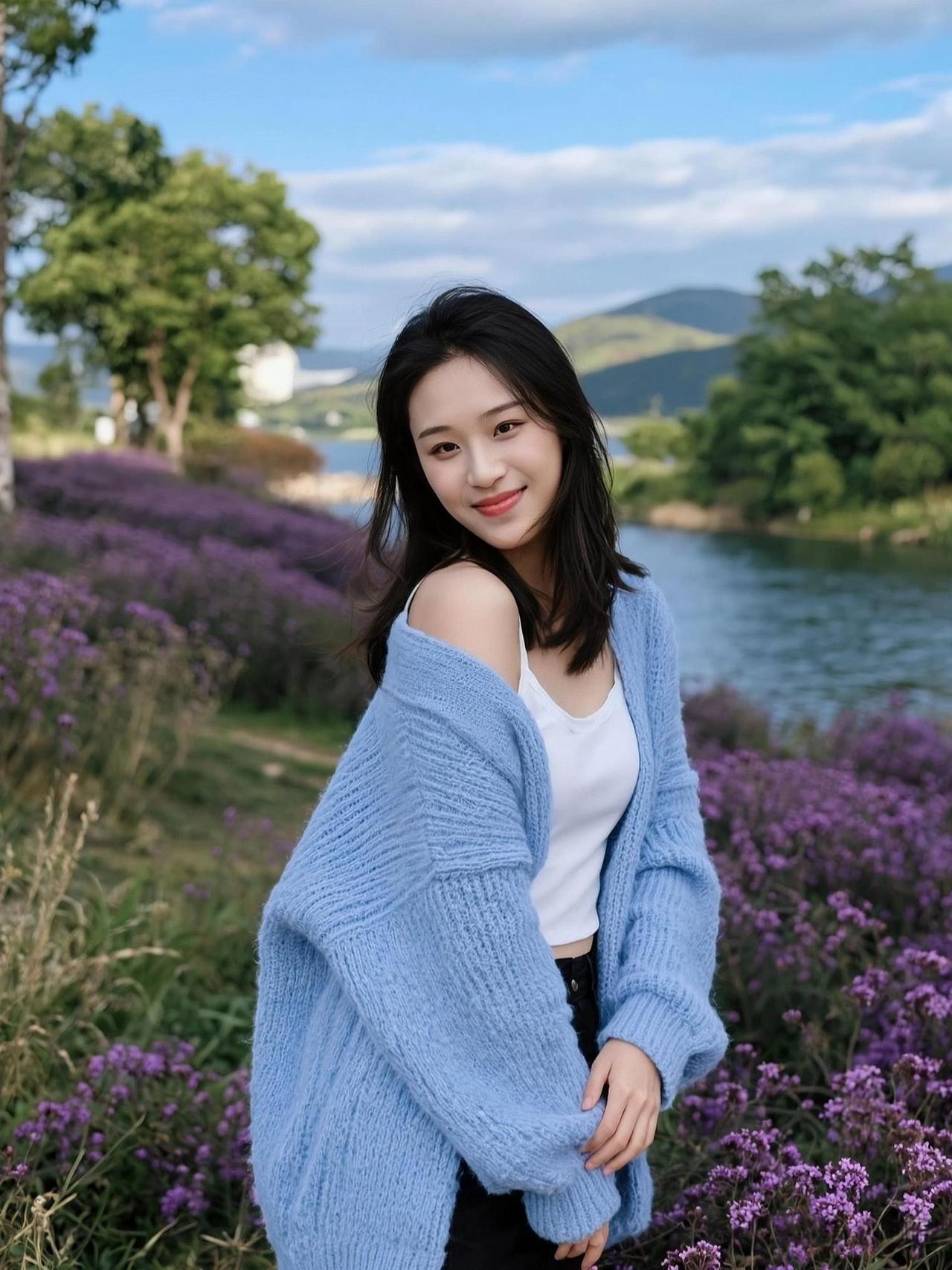 晴光裁碎半江柔, 紫穗摇风野岸秋。 云影轻栖衫色里, 笑涡漫作一川流。 秋日风景照 素净人像照 花漾亮色人像 东方意境人像 多云拍照技巧 秋湖人像写真