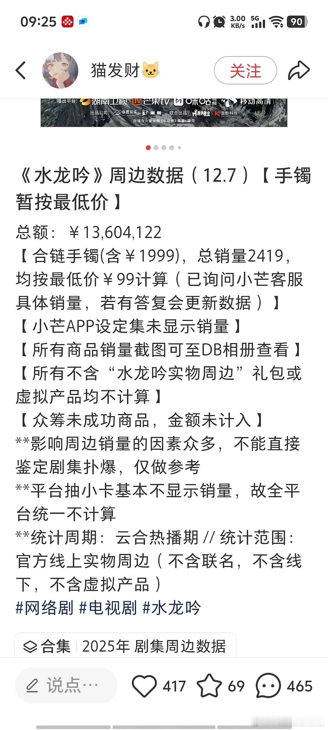 “周边型艺人“名副其实啊,水龙吟周边竟然破一千三百万了!截止到12月7日,水龙吟