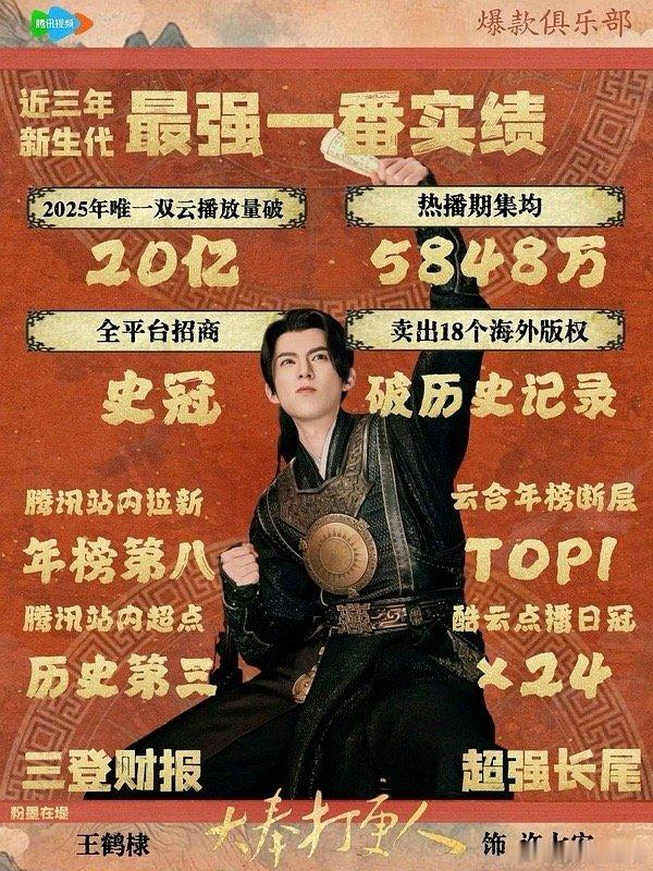 这个王鹤棣许七安到底该有多少惊喜今天《大奉打更人第一季》又一次登上了N刷榜第五名,大奉还是今年古装剧热播期集均TOP,招商TOP