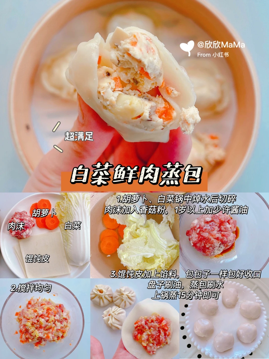 真的每一款都好吃哦~有菜有肉~皮薄馅嫩~口感丰富~营养满满~轻松搞定饭渣宝宝的一餐