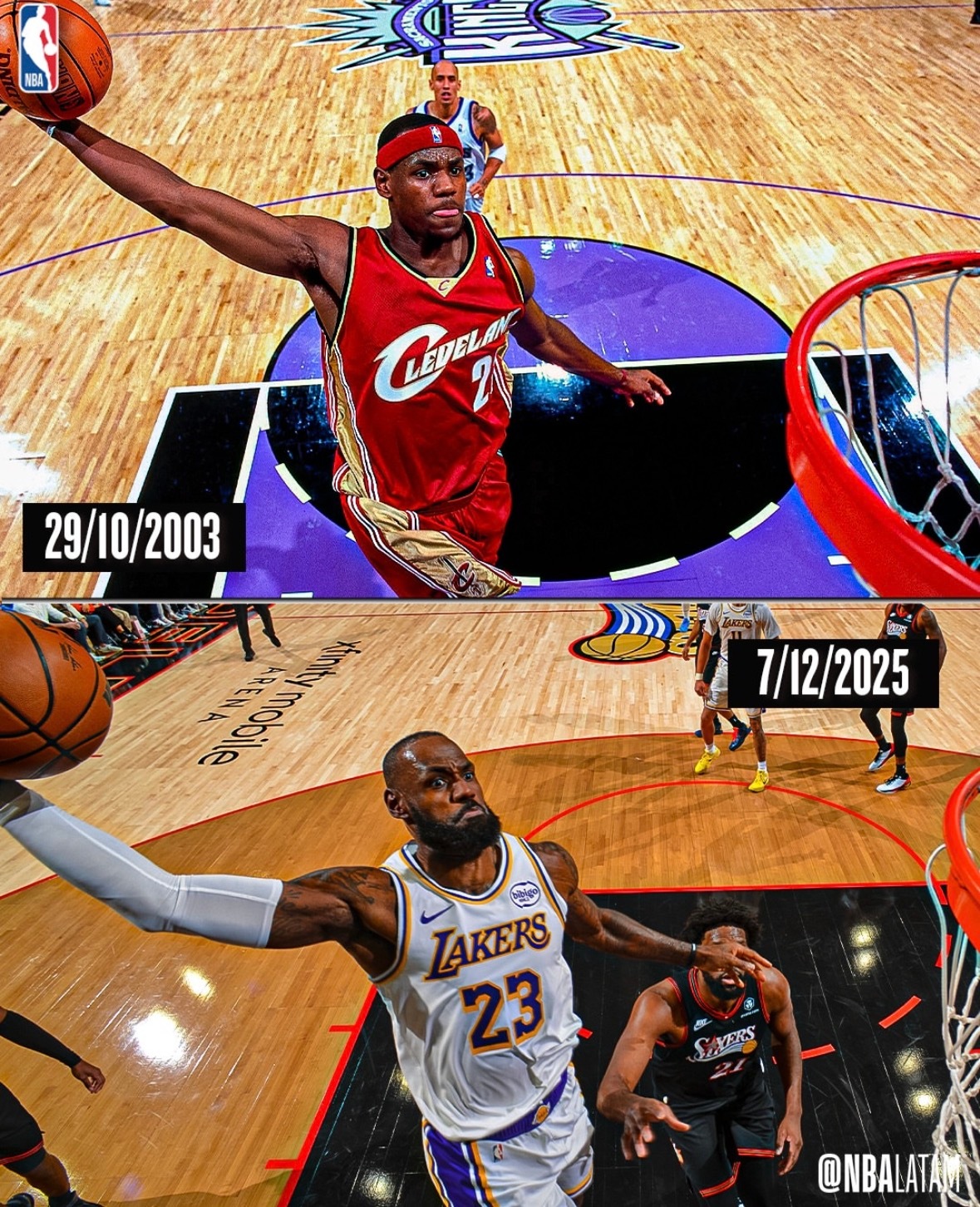 詹姆斯今天那个快攻暴扣,跳的真的挺高的,完全无人防守,再加上今天身体状态好,所以看着相当暴力美学。洛杉矶湖人nba