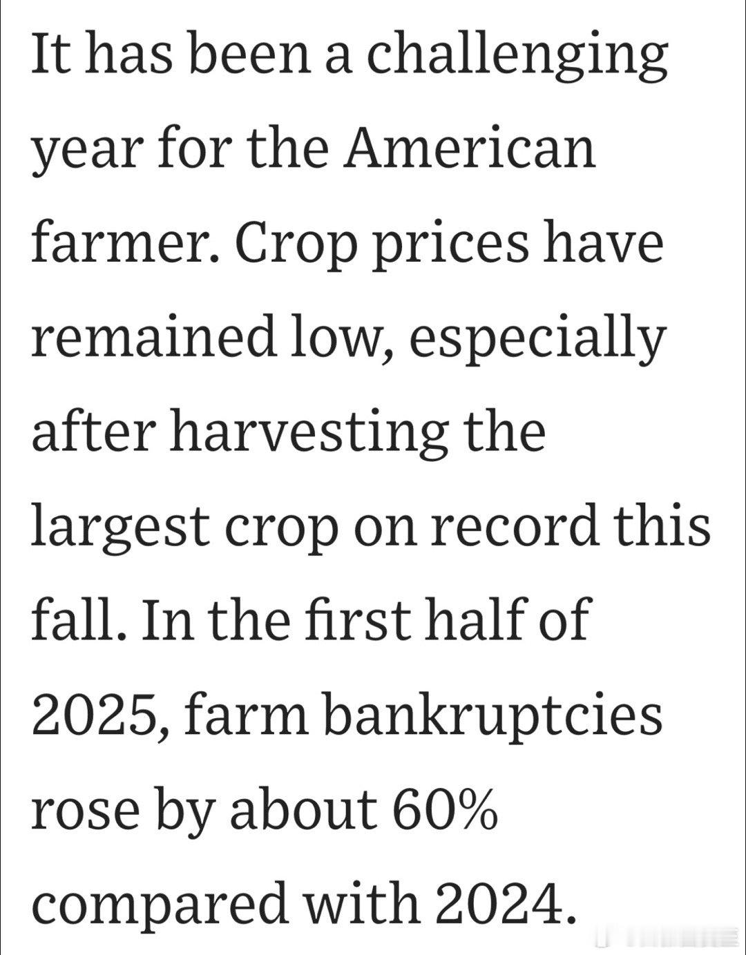 总统今天将在白宫接见农民代表、并宣布:发$120亿补贴,帮农民“渡过暂时的难关”美国农民,今年收成创纪录,但因为关税,成本高、销量低、利润少,破产数量比去年同期增加60%