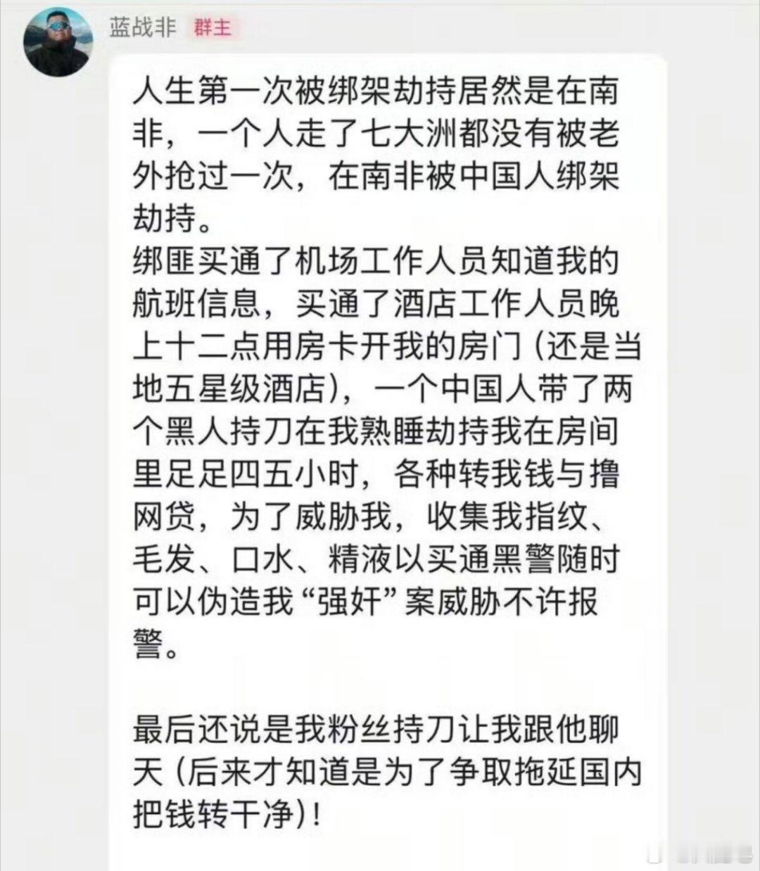 蓝战非被绑架在南非被中国人绑架了,这就像电影剧情一样。而且还是策划了很久的绑架