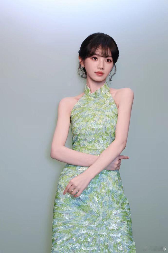 田曦薇绿色挂脖旗袍 完全带来了江南水乡的一种温柔感的呀,看到田曦薇绿色挂脖旗袍,简直就是给我们感受到了心动的氛围!好像江南的千金小姐