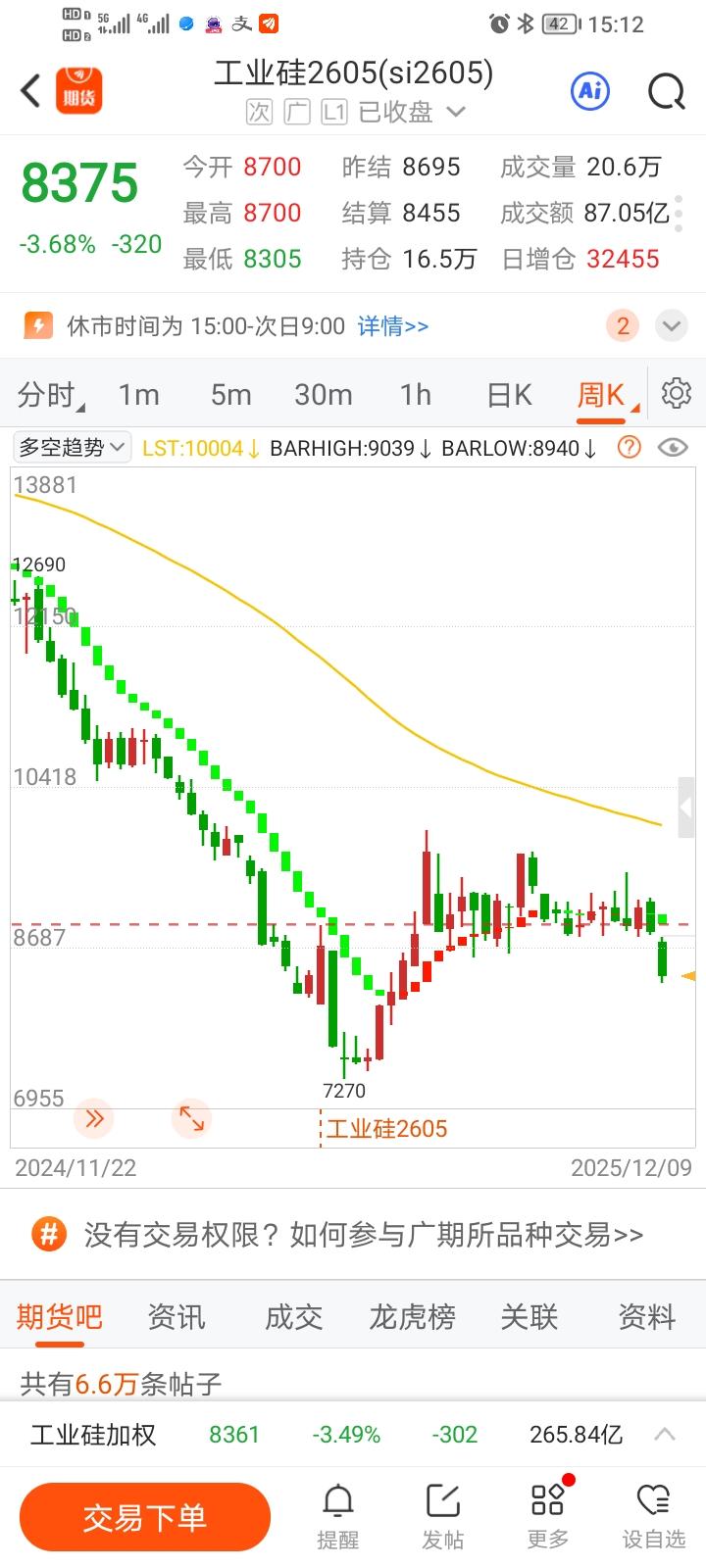 (不构成投资建议) 事出反常必有妖,同样是“硅”,走势却大相径庭。 从周线来看,工业硅在8600这个价位盘整许久。参照碳酸锂的走势,我判断它会向上突破,于是选择做多,结果方向做反了,我认! 然而和多晶硅对比,原本二者是同向涨跌的。今日多晶硅大涨超三个点,它却跌了超三个点,这就让我费解了! 心中实在不服气,要不要加仓抄底呢?