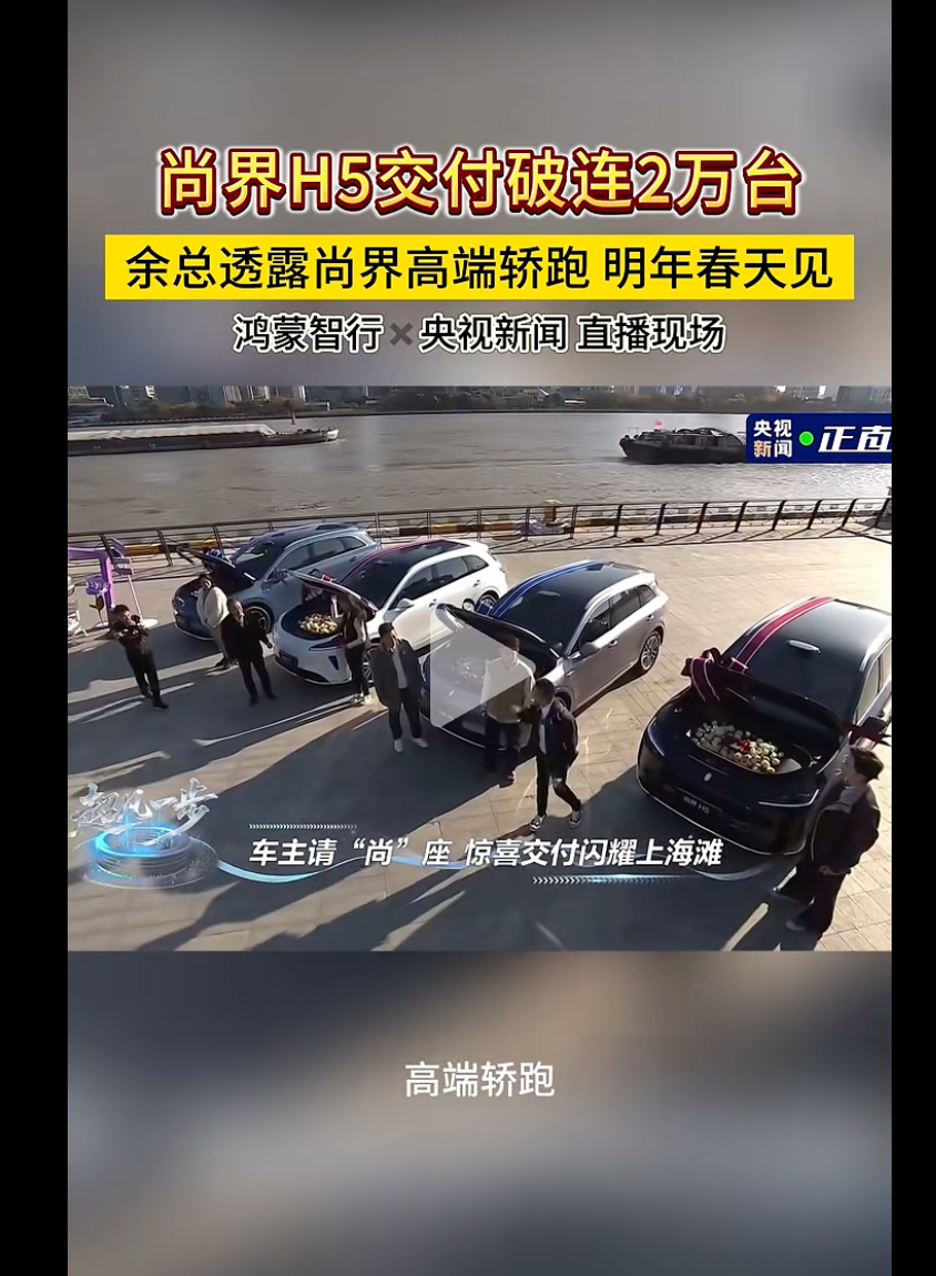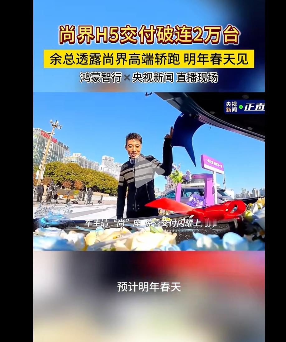 余承东官宣尚界首款轿跑明年上市 鸿蒙智行年度直播带来了尚界的重要动态,不仅官宣其首款车型尚界 H5 交付突破 2 万台,还剧透了 2026 年将推出至少 2 款新车的计划(一款为SUV,一款为高端轿跑)①交付,78 天的它累计交付成功突破 2 万台,此前 43 天便交付过万,跨年购置税补贴延期方案,补贴时间延长至 12 月 31 日,用户最高可获 9000 元补贴。②新车,一款为高端轿跑,官方称其外观可比肩欧洲某款百万级别性能车,该高端轿跑计划在 2026 年春季正式推出。不过目前关于另一款SUV新车的具体车型、动力配置、续航参数等细节信息大V聊车