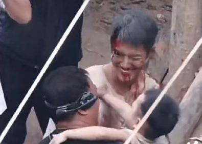 电影拍摄现场,肖战饰演的工匠"莫得闲"(角色名谐音"莫等闲")以满脸血污的战损造型试图亲吻饰演其儿子"莫等闲"的小演员,但孩子多次用胳膊用力抵住肖战的脸拒绝,连续三次躲开亲吻。