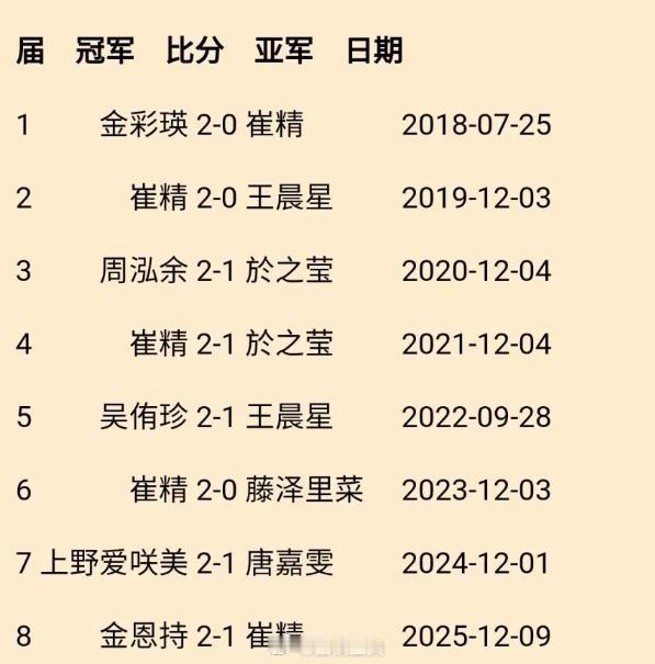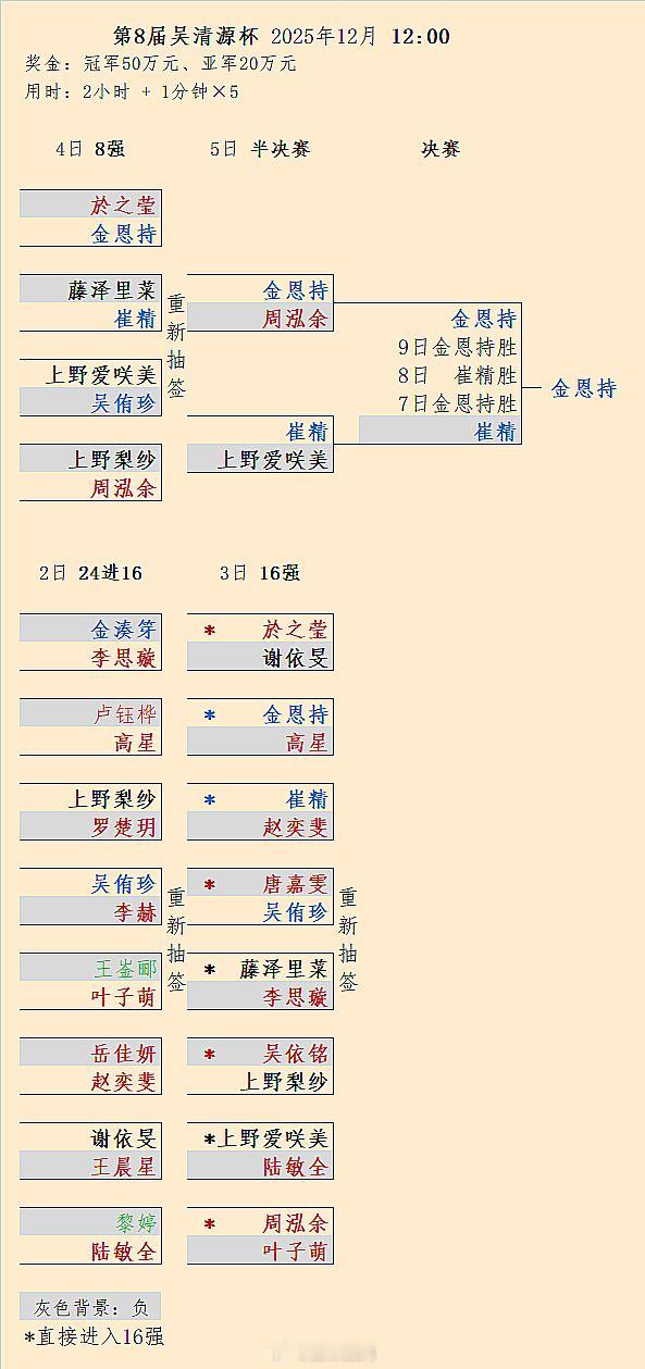 金恩持1-0崔精,明天继续第8届决赛第2/3局