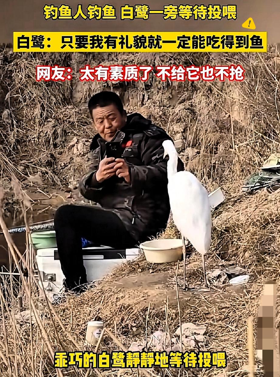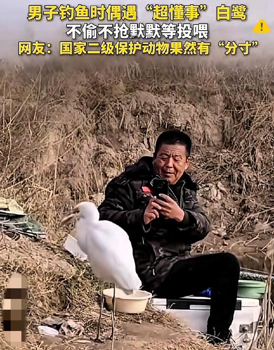 这白鹭也太懂“为人处世”了吧! 陕西钓友河边钓鱼,一只白鹭乖乖站在旁边“文明要饭”,不吵不闹不抢食,只安静等投喂,这分寸感比人还强! 脚边鱼盆里的鱼活蹦乱跳,它连看都不多看,不远不近保持距离,像个守规矩的邻居。 钓友投喂小鱼,它才慢悠悠叼走,全程默契又和谐。这哪是野鸟,分明是把“分寸换善意”的道理刻进了骨子里。 其实人和人相处也该这样,懂边界才长久。 白鹭都知道抢食只会断了后路,等待才能换来持续的善待,反观有些人却总想着越界索取。 最好的关系从来都是双向奔赴,你守分寸,我付善意,才能像这钓友和白鹭一样,相处得舒服又长久。 你遇到过这么有灵性的小动物吗?生活中你最看重相处的“边界感”吗?