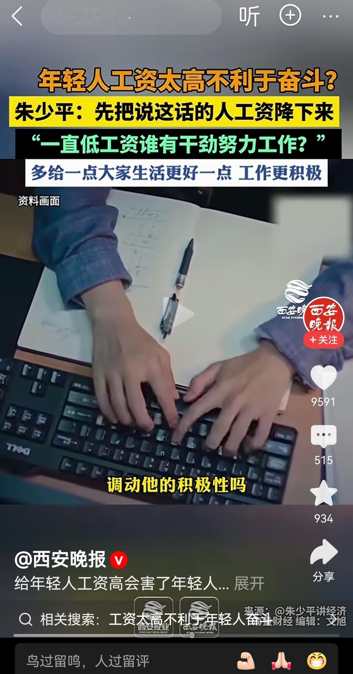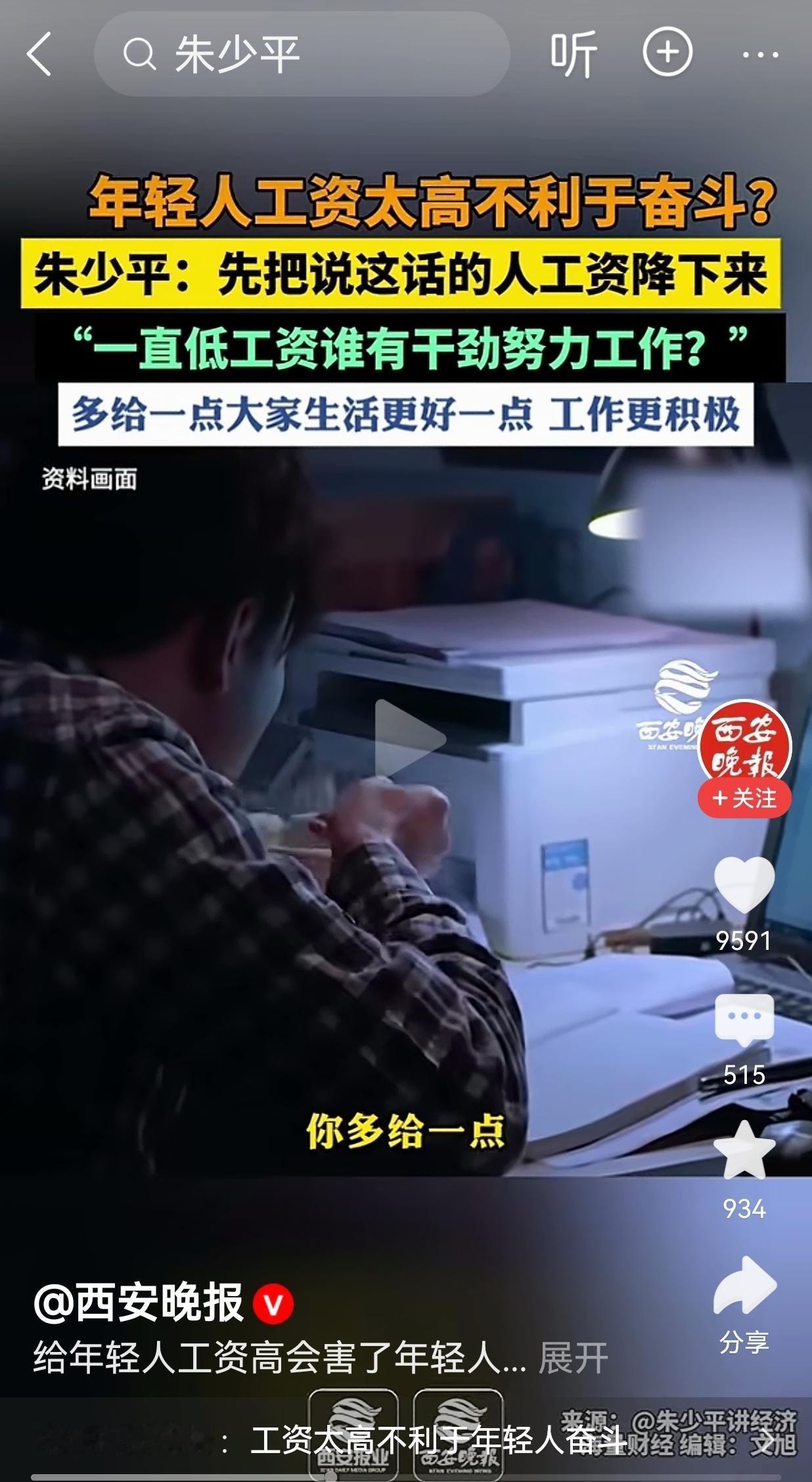 从国家利益的角度来说,是不是应该提高年轻人的工资,让年轻人敢于消费、有条件消费。而不是担心“给年轻人工资高了会害了他们”! 大家来听听朱少平教授是怎么说的。