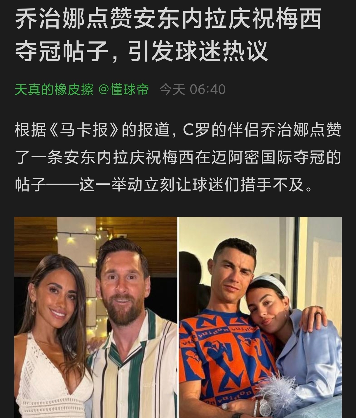 说实在的,乔治那点赞安东内拉,更像是对罗先生最近蹭梅西蹭的太狠,所表达一种内疚式的示好……嫂子确实是贤内助,没的说