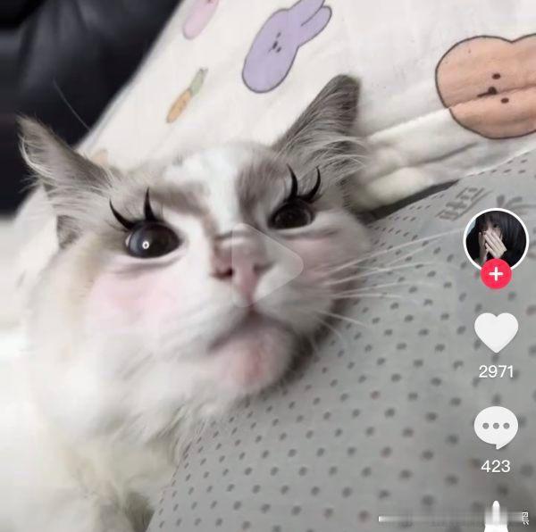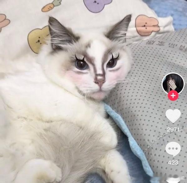 抖人连自己的小猫都不放过 给小猫化全妆贴假睫毛,评论区也有一堆人给小猫化妆的小猫好惨(是动图,不是特效或者p图,作者评论区也承认了的)