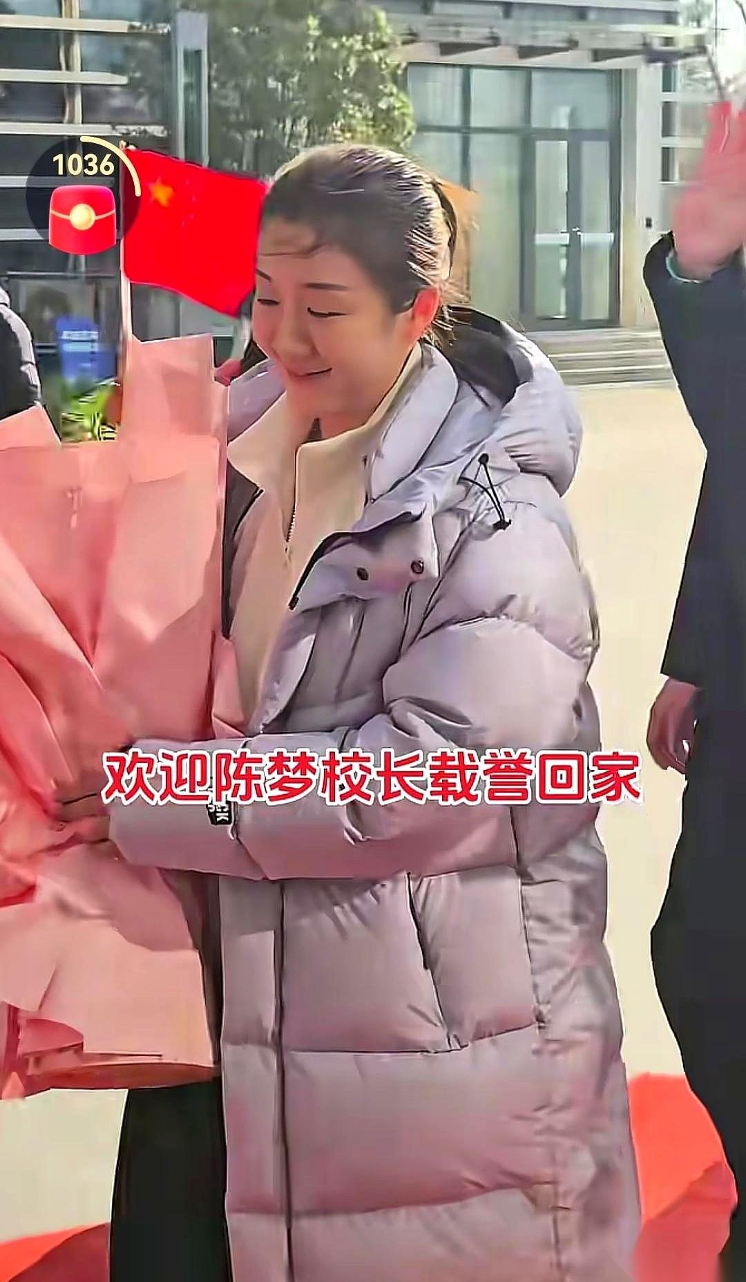 什么叫衣锦还乡?我跟你说,这才叫顶配版的。 不是在聚光灯下,不是在庆功宴上。 就是一个普普通通的冬日,世界冠军陈梦,穿着羽绒服,回到了那所以她名字命名的乒乓球学校。 学校给她铺了红毯。 一次性的,薄薄一层,可能风一吹就跑了。 校门口搭了彩虹门,就是那种开业庆典最常见到的。 孩子们手里攥着小红旗,脸蛋冻得通红,扯着嗓子喊:“欢迎陈梦校长载誉回家!” 你品品这个称呼。 不是“冠军”,不是“明星”,是“校长”。 这俩字一出来,性质全变了。 冠军是她自己的荣耀,但“校长”,是她对这群孩子的责任。 那一刻,她就不是一个挂名的符号了。 她是一个活生生的、能让孩子们亲眼看到的梦想。 她走过的每一寸一次性红毯,都在告诉这些孩子:你们的未来,也可以是星辰大海。 说白了,最高级的“荣归故里”, 从来不是你带回来了多少名和利, 而是你能不能,也为故乡,带回来一束光。