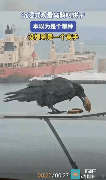 乌鸦的智商还真的可怕! 一个男子为了测试乌鸦的智商,在户外的一个小平台上放了6块小饼干。 一只乌鸦很快发现了美食 它还有几只幼小的乌鸦 必须要将这几块饼干 带回自己的窝里 在视频中,我们可以看到 乌鸦并没有自己独享 而是运用自己的智慧 将饼干垒了起来 用自己的嘴巴全部叼住 乌鸦是不是很聪明?