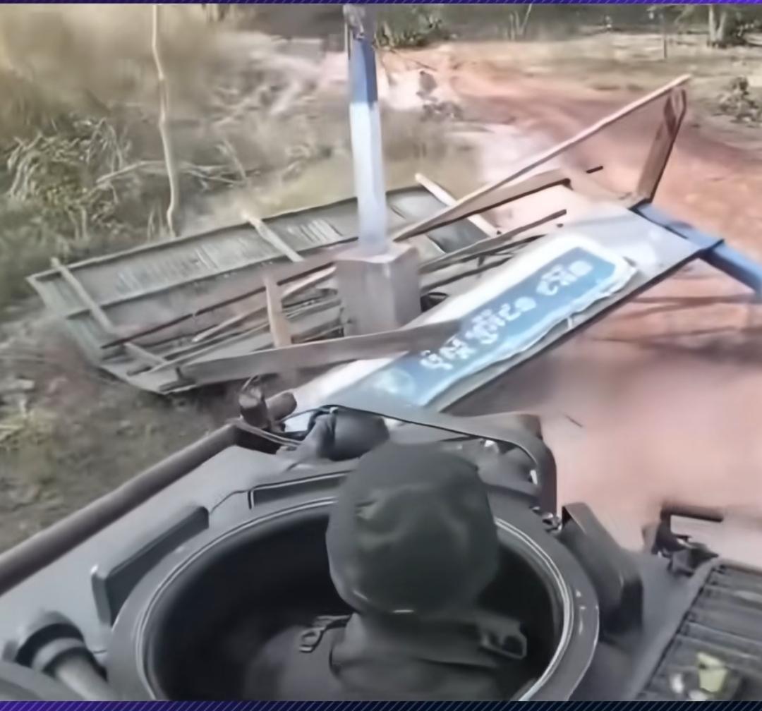 泰国猛烈突击,坦克推到柬埔寨路标,泰国战斗机跨境轰炸,坦克突袭占领多个重镇,地面特种部队插上泰国旗,泰国高歌猛进打击柬埔寨。