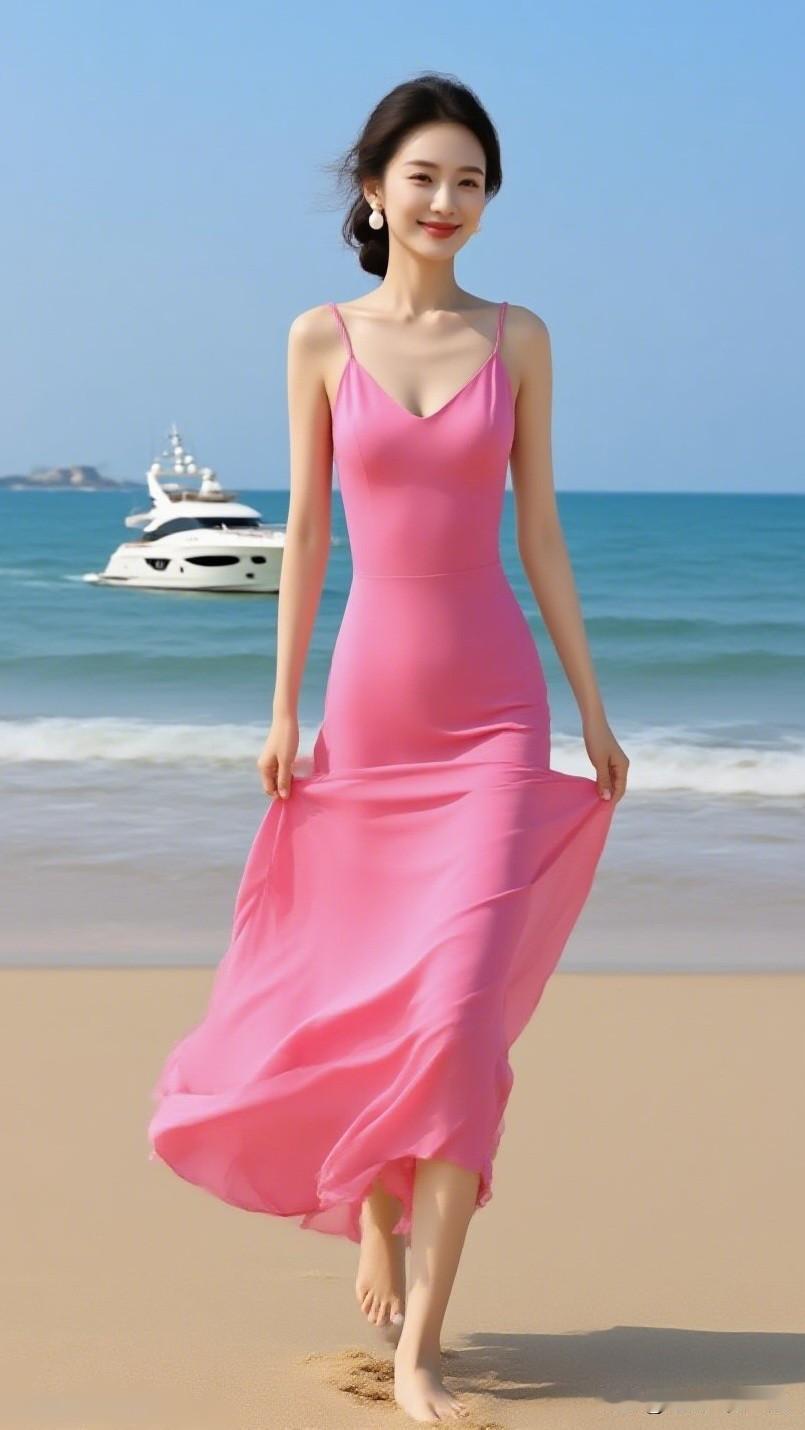 粉裙拂海风,笑语逐浪轻。谁有拍的很好的风景照分享一下 夏日海滩穿搭指南:粉色连衣裙+阳光沙滩,轻松自在!🌞👗🏖️
