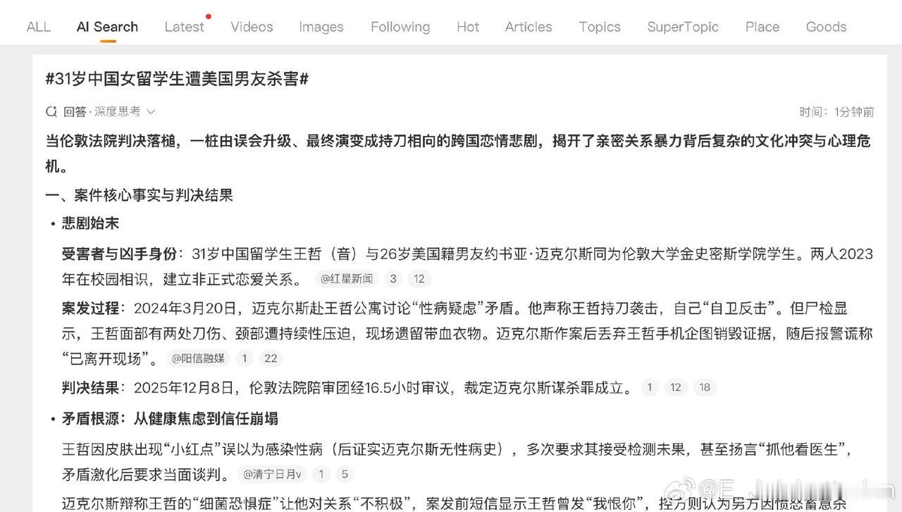 31岁中国女留学生被26岁美国男子杀害,现在谋杀罪名成立。 两人都在英国留学,男女朋友关系,女的因为身上发现红点,怀疑被男子传染得了性病,男的说自己没有性病,结果两人吵来吵去,男的就将女的杀了。 我在想,就算得了性病,应该及时去医院治疗,你们吵能把性病吵好?何况还只是怀疑。 真不明白,他俩会吵些什么。
