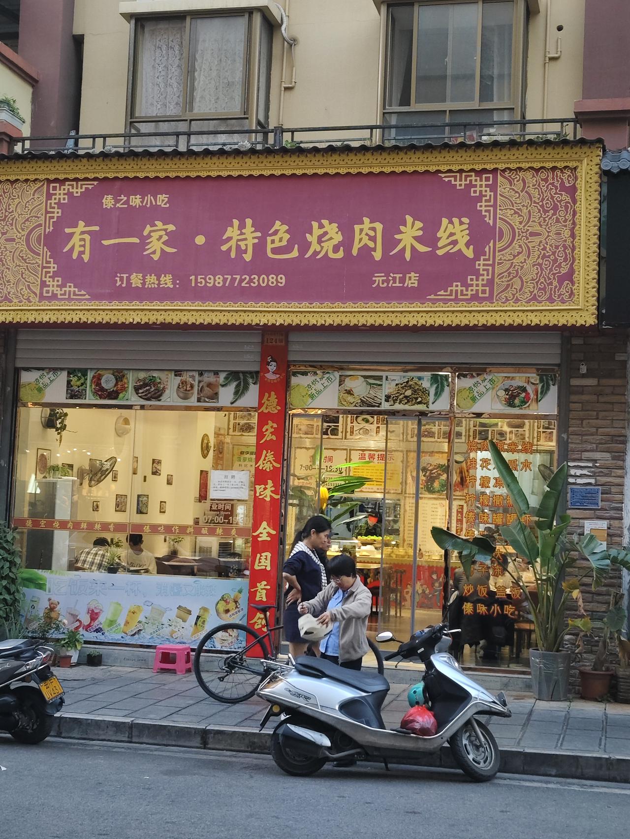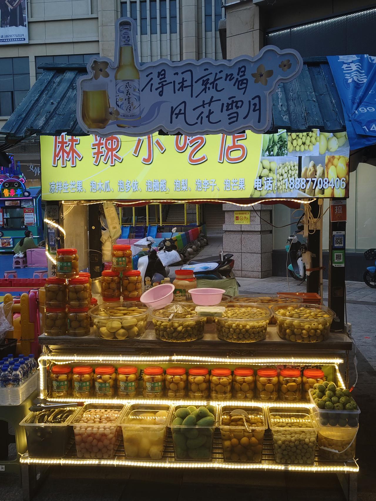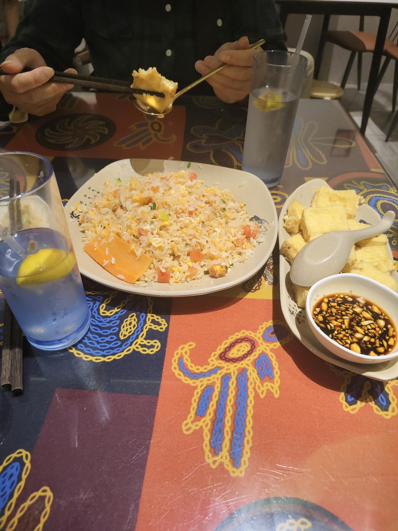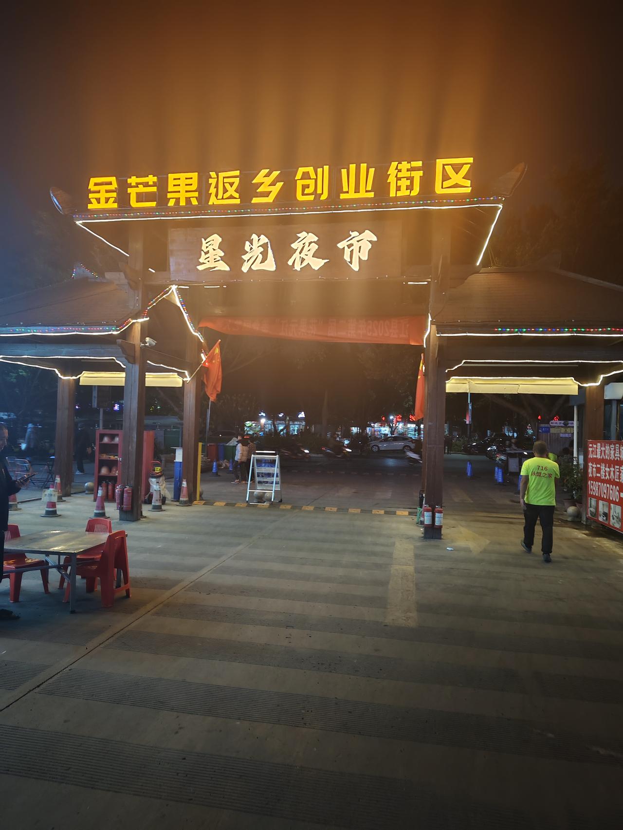 去元江星光夜市打野 打野是个网络用语,这个词有多种的解释,我这里的意思是自由的活动,随性而为的觅食过程。 早就知道元江有一个非常有名的打卡地——星光夜市。对于我们来说,到了这般年龄有早睡早起的习惯,很少有夜晚出去寻找美食的习惯。网上看得多了,我们也经不起诱惑,今天不做饭了,去星光夜市找好吃的。 星光夜市离我们住得地方不远,导航上显示有2、1公里,我们决定徒步前往。当我们迈进夜市的大门,各种美食的味道在空中弥漫着,那种各种夹杂着的香味冲击着我们的嗅觉,各种花里胡哨的小吃广告吸引了我们的目光,这那还挪动了步子,流连于摊位之间,行走于几个窄巷,寻找着我们未曾见过,见过未吃过的美食。 其实,这种场合的美食不大适合我们老年人的胃口,我们之所以来,就是想体会一下元江的烟火气的同时,也开阔一下我们的眼界,滿足一下我们的好奇心,让自己回家后也有吹牛的资本。 最后,我们选择了一家傣味小吃店,这家店的装饰很有少数民族风格,傣风傣韵的氛围俘虏了我们的好奇心。在极具傣族风格的餐桌前坐下,老伴儿点了一份西红柿炒饭,一份炸豆腐。再加上免费的冰镇柠檬水,我们开始了品。炒饭不错,米粒松散,西红柿炒得刚好,鸡蛋的浓香再加上甜咸适中的味道加持,这炒饭绝了! 再说那盘炸豆腐,在焦焦的外壳下竟包藏着内容——鸡蛋清。夹起一块先别入口,你闻,那香气不仅扑鼻,而且穿喉入胃让你垂涎已滴。别急,你再醮上店内提供的醮水,再入口,去想吧你! 美味是经不起消耗的,明明吃完了我们还不想离去。抿着杯子里冰凉的柠檬水,环视墙上的文字元素和悬掛的少数民族的物品,再看看座无虚席的就餐场景,我们感觉来值了。 人生有很多的重复,有些重复会使幸福加倍,我想,我们还会来星光夜市,再来一次幸福的重复!元江星光夜市 元江美食